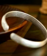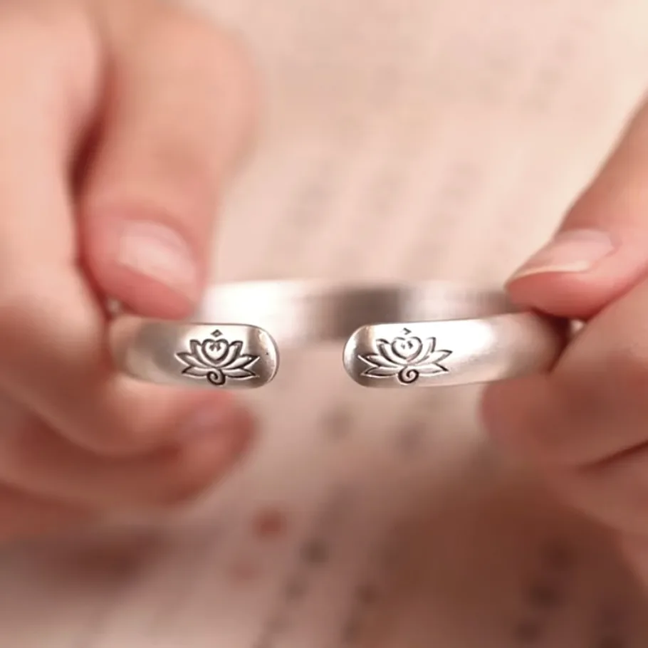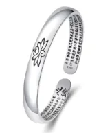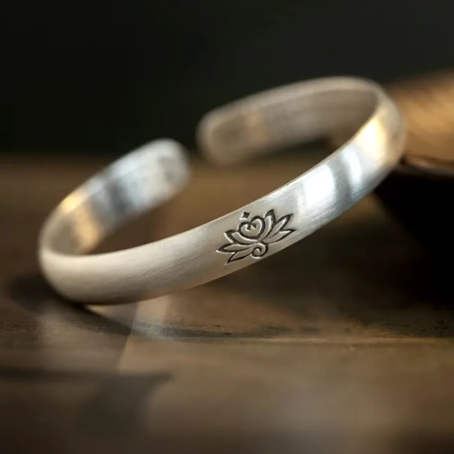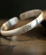 Deze mooie Tibetaanse Armband van titanium heeft een mat zilveren plating, met ingegraveerde Lotus Bloemen en een hart. De bangle heeft een luxe uitstraling en kan licht worden gebogen, om de armband perfect passend te maken. Geef deze armband cadeau of draag hem zelf!. Jij steelt de show met dit prachtige exemplaar om je pols.