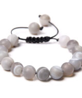 Deze prachtige vegan armband Clouds is handgemaakt en voorzien van verschillende ronde kralen vervaardigd uit de edelsteen Agaat. De matte kralen zijn geregen op een verstelbaar koord, met aan beide uiteinden een kraal. Een trendy aanvulling op je outfit! Een natuurlijke uitstraling met een subtiel effect.