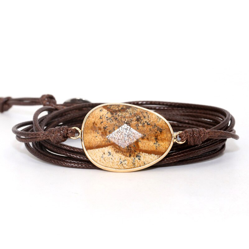 Armband Edelsteen Aragoniet Donkerbruin Waxcord