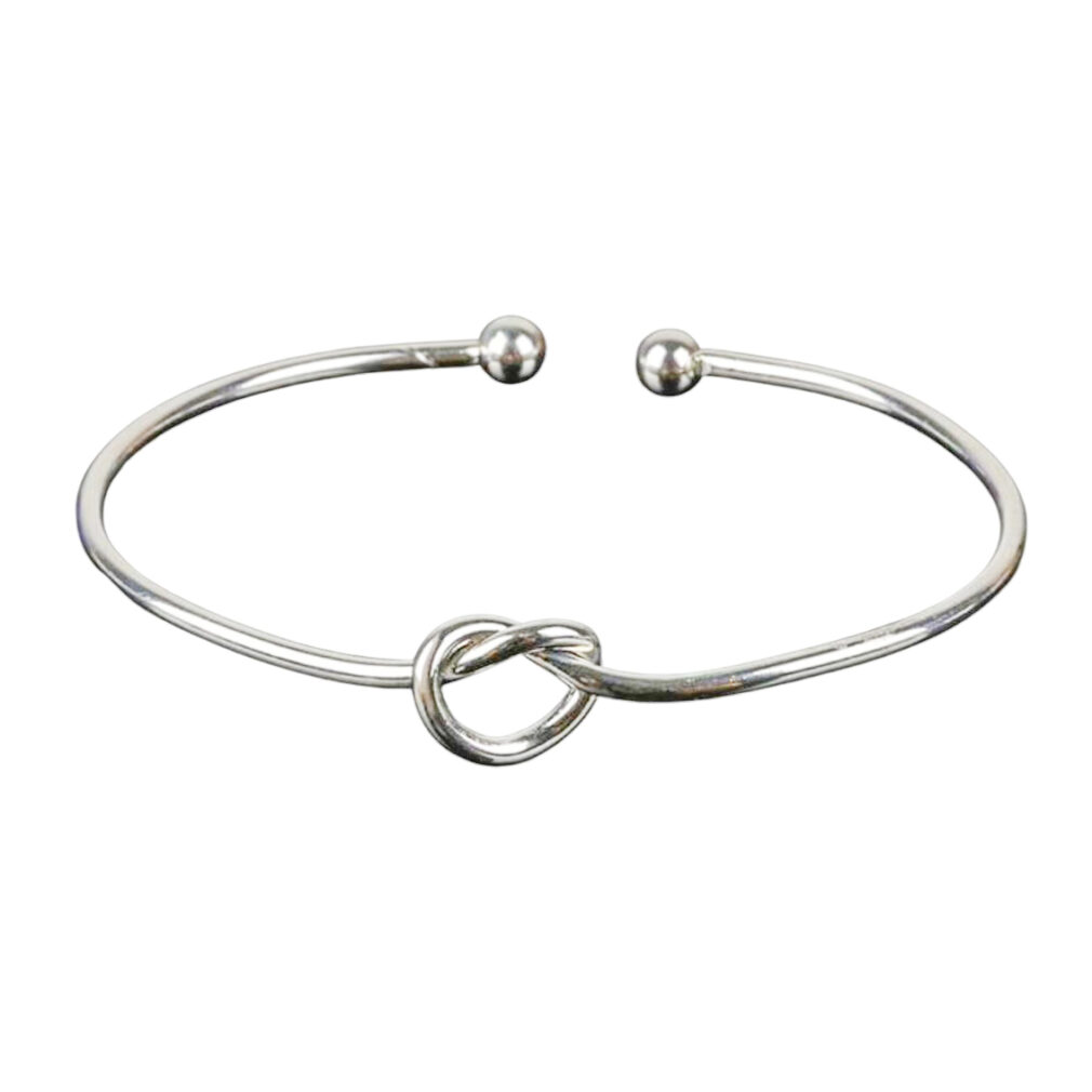 Deze trendy bangle is gemaakt van zilver en is een leuke damesarmband om cadeau te geven!! Een simpel maar elegant design perfect voor dames en heren. De licht buigbare armband heeft een mooie vorm van een knoop in de vorm van een hart. Mooi om enkel te dragen, maar ook leuk met andere armbanden. Geef deze mooie eens cadeau aan je geliefde. Dit sieraad wordt geleverd in een luxe geschenkverpakking.