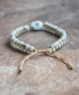 Deze schitterende vegan armband is handgemaakt van bruin vegan waxcord en edelstenen. De armband is vervaardigd van Jaspis edelstenen in de kleur wit. Een trendy armband met een vrouwelijke touch! Perfect te dragen door dames. Het lichtbruine waxcord heeft een verstelbare sluiting, waardoor de armband draagbaar is voor zowel smalle als bredere polsen. Deze armband wordt geleverd in een luxe geschenkverpakking.
