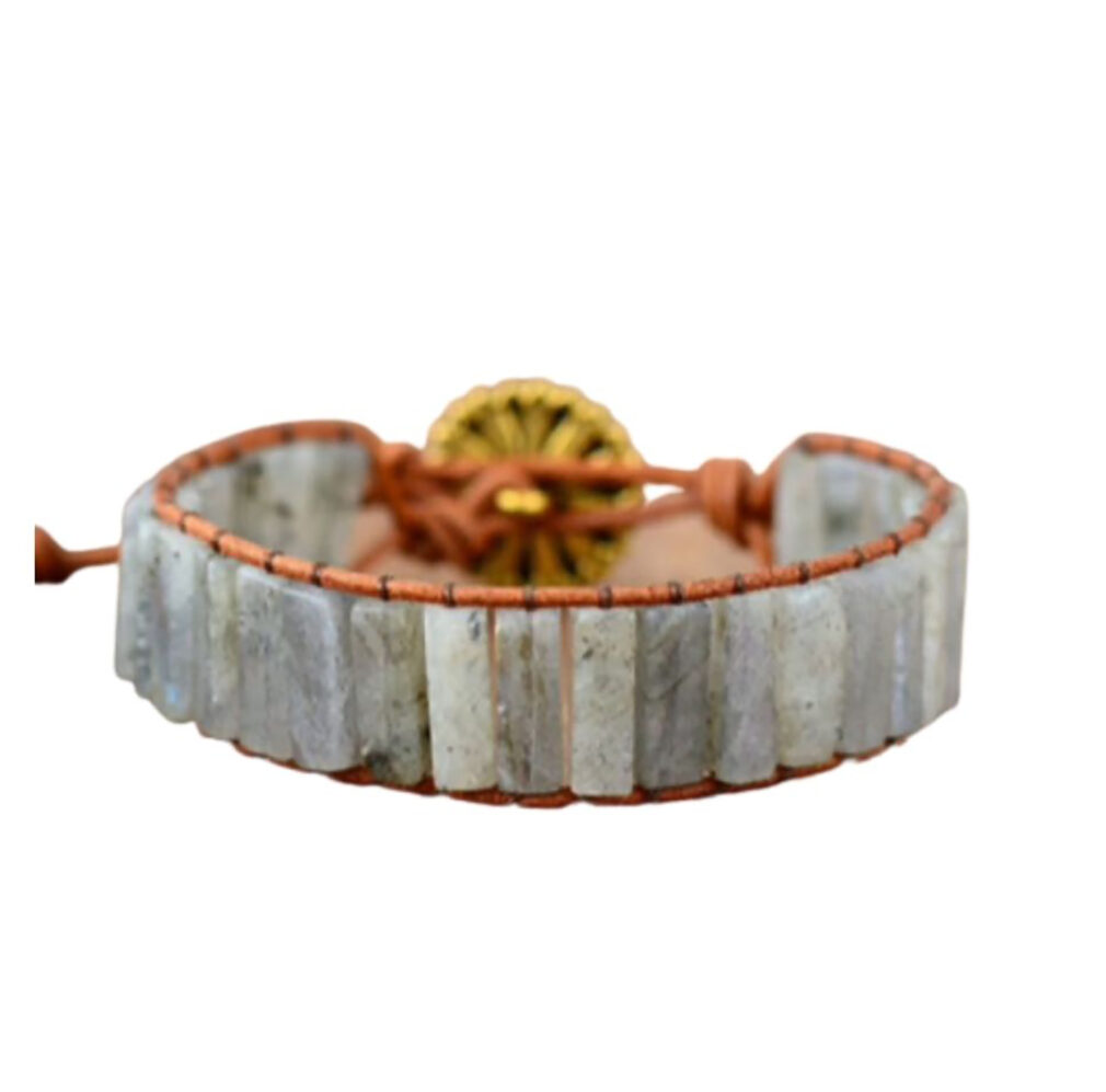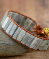 Armband Lichtbruin Leer Grijze Agaat Edelstenen