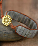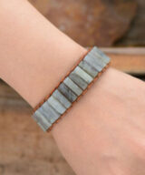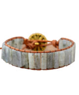 De prachtige armband is handgemaakt en voorzien van bruin leren koord en grijze Agaat edelstenen. De armband is een mooie aanvulling op je outfit! Een neutrale uitstraling waardoor die als dames of heren armband zeker geschikt is.