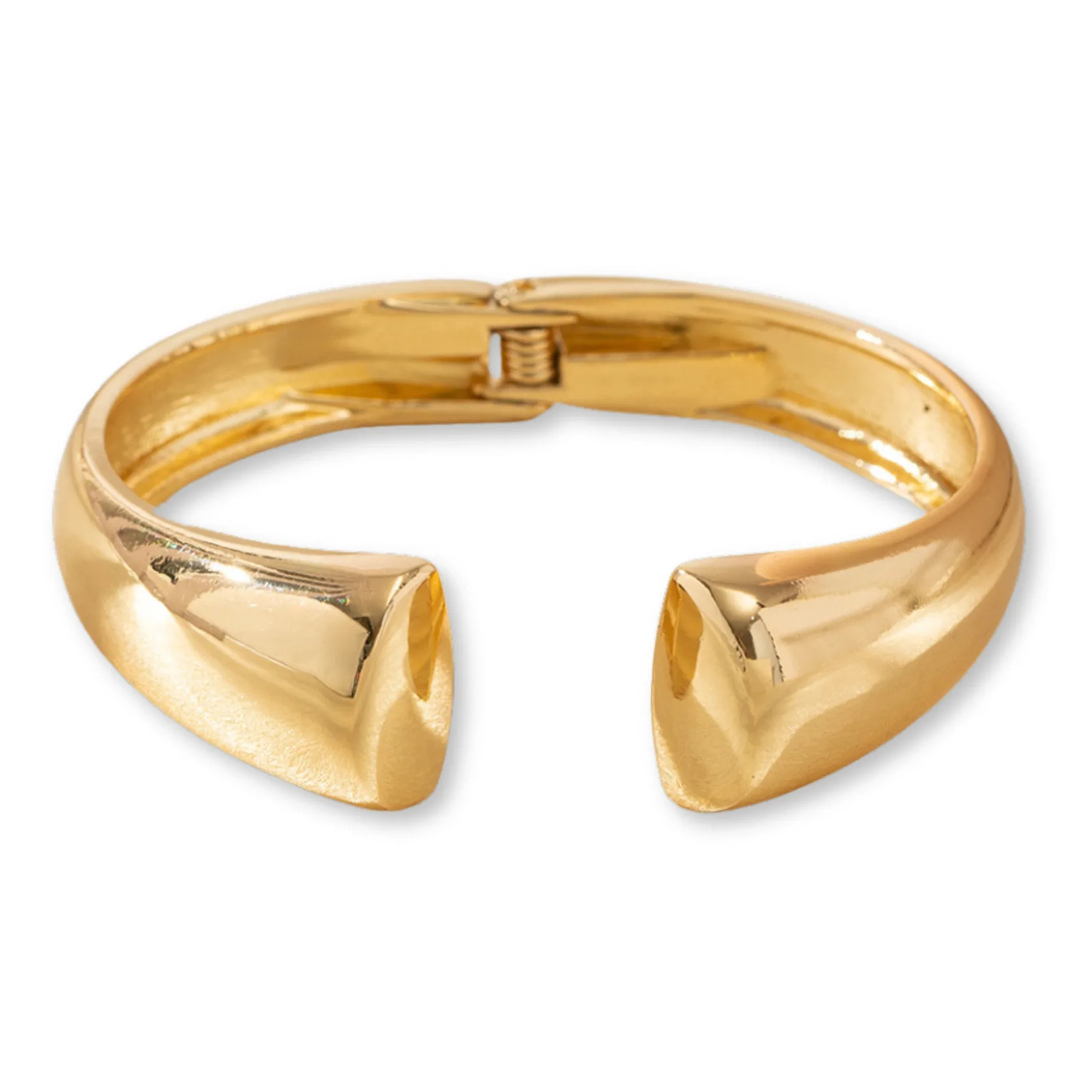 De Marama Armband Mila Goud is een prachtige toevoeging aan je sieradencollectie. Deze damesarmband is gemaakt van stainless steel met een gouden plating (nikkelvrij), waardoor hij niet alleen stijlvol maar ook duurzaam is. Het ontwerp met scharnier maakt het gemakkelijk om de armband om te doen en af te nemen, en de grove bangle stijl geeft een chique uitstraling die perfect past bij elke gelegenheid.
