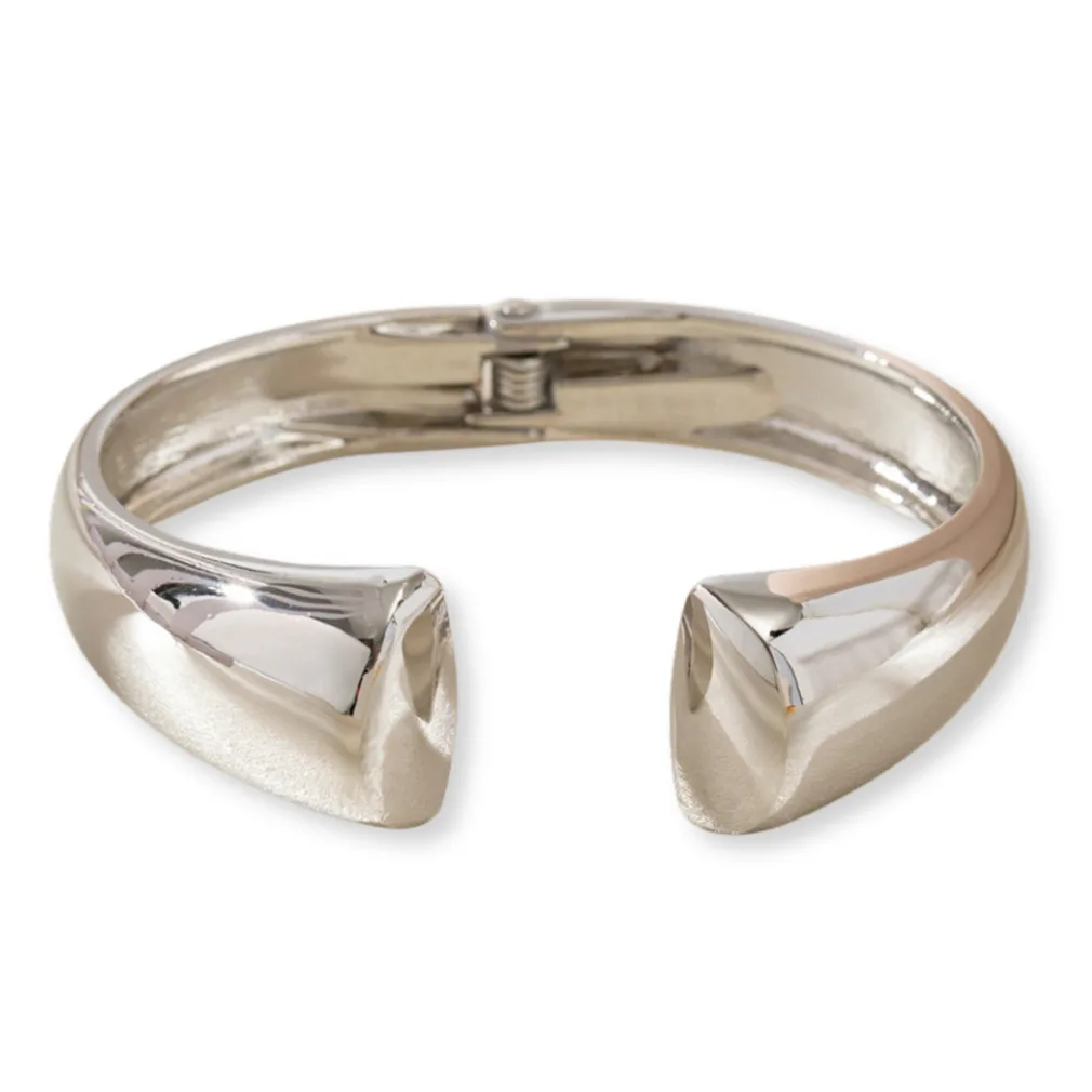 De Marama Armband Mila Zilver is een prachtige toevoeging aan je sieradencollectie. Deze damesarmband is gemaakt van stainless steel met een zilver plating (nikkelvrij), waardoor hij niet alleen stijlvol maar ook duurzaam is. Het ontwerp met scharnier maakt het gemakkelijk om de armband om te doen en af te nemen, en de grove bangle stijl geeft een chique uitstraling die perfect past bij elke gelegenheid.