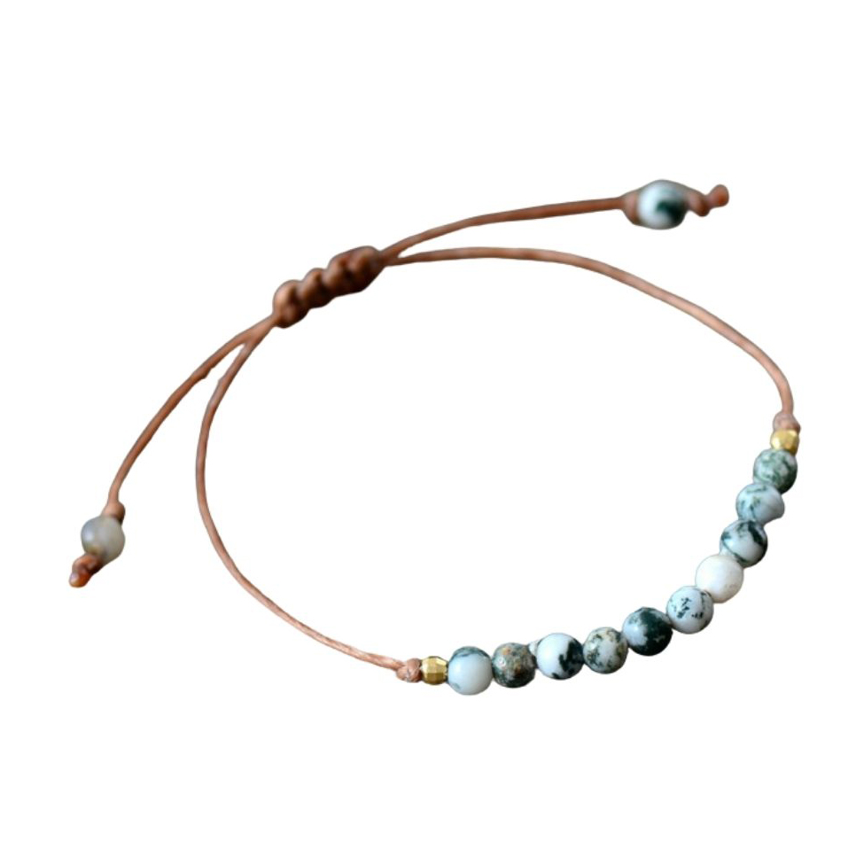 Deze minimalistische armband is gemaakt van vegan waxcord met een verstelbare sluiting, dus one size fits all! De armband beschikt over 10 gemarmerde kralen van 4 mm. Perfect voor dames en heren die van minimalistische sieraden houden.
