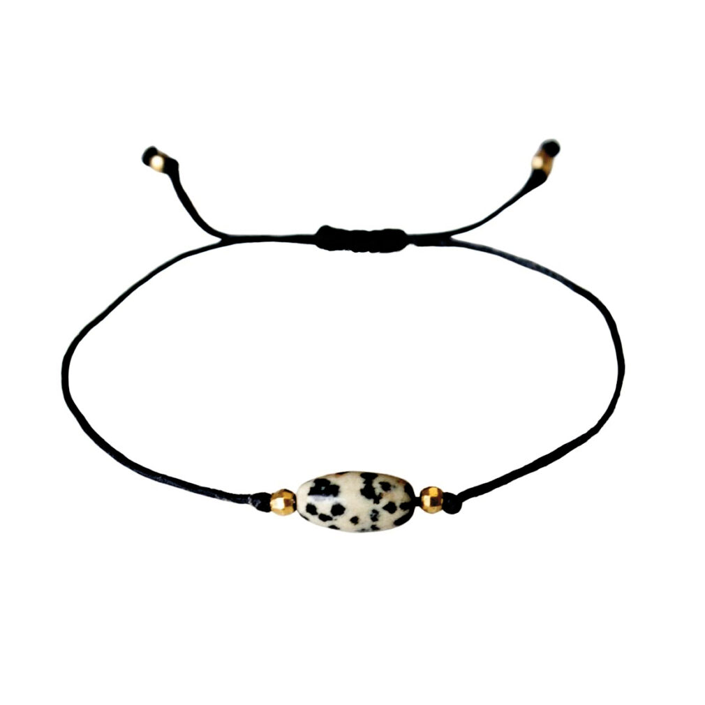Deze minimalistische armband is gemaakt van zwart vegan waxcord met een verstelbare sluiting, dus 1 size fits all! Elegantie is wat de armband roept! Daarom ook te dragen door dames en heren. De armband beschikt over de edelsteen Jaspis en 2 goudkleurige kralen. Geleverd in een luxe geschenkdoos.