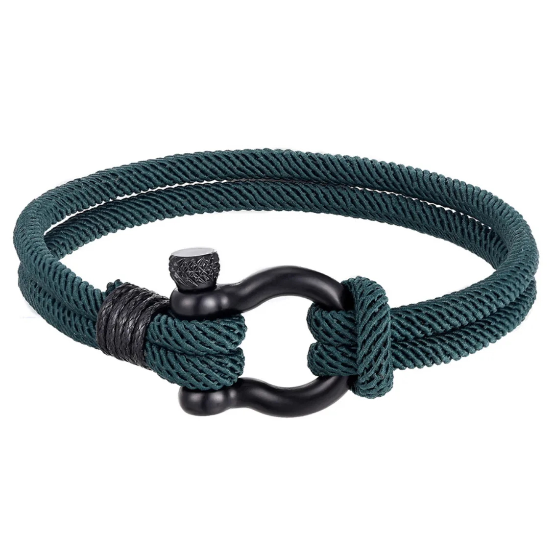 Stoere Herenarmband Rope Petrol met Zwarte Titanium Harpsluiting