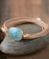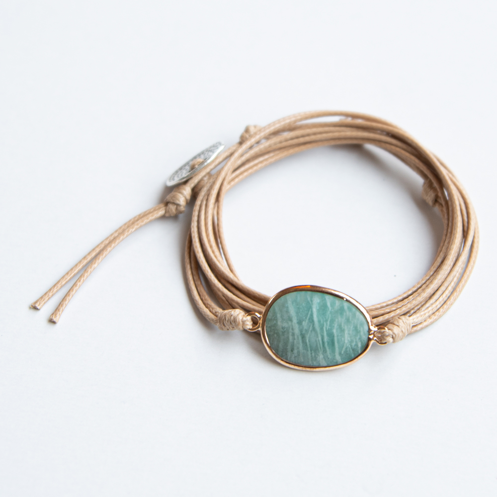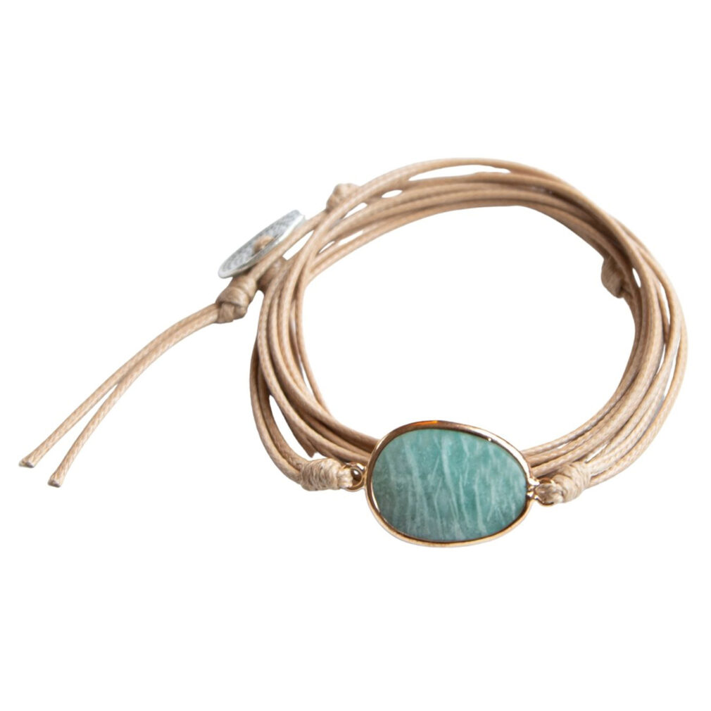 Wikkel Armband Edelsteen Amazoniet Lichtbruin Waxcord