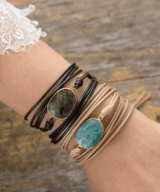 Deze wikkelarmband met edelsteen amazoniet is de perfecte keuze voor elke vrouw die houdt van stijlvolle en betekenisvolle accessoires. De armband is ontworpen om elegantie en verfijning te brengen in elke outfit, met een uniek ontwerp dat zich mooi rond je pols wikkelt. De prachtige amazoniet edelsteen komt in verschillende kleuren die bij verschillende lichtinvallen een betoverend effect creëren. Of je nu binnen of buiten bent, de armband heeft altijd een bijzondere gloed die je pols verfraait. De steen heeft allerlei kleuren bij verschillende lichtinvallen, zoals turquoise, lichtgroen en zachtbruin.