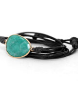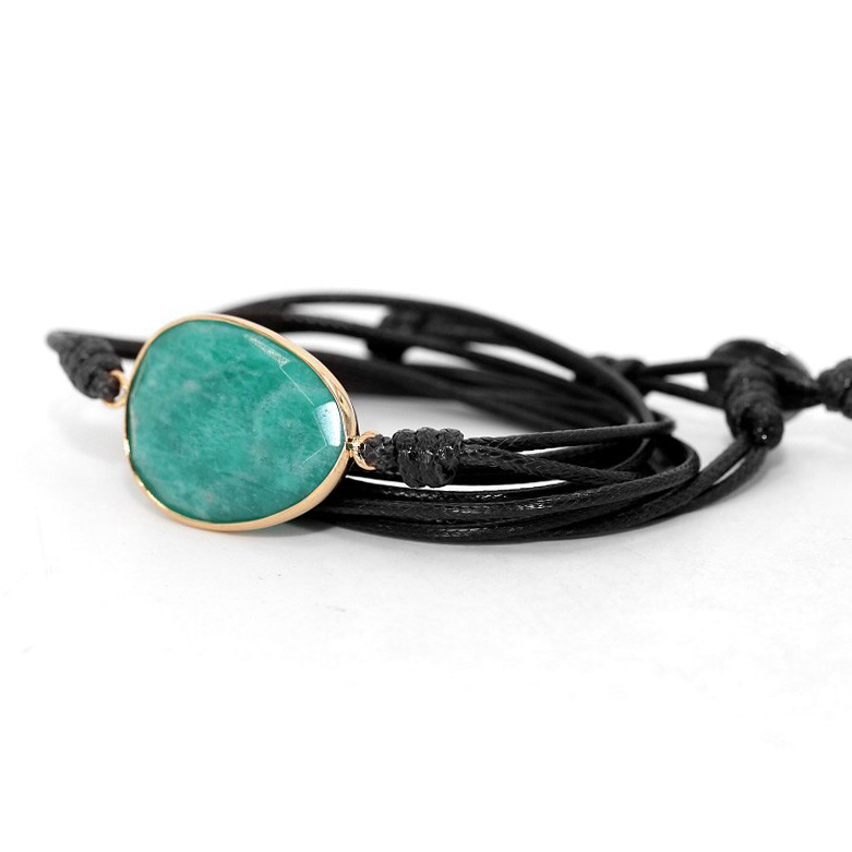 Wikkel Armband Edelsteen Amazoniet Zwart Waxcord