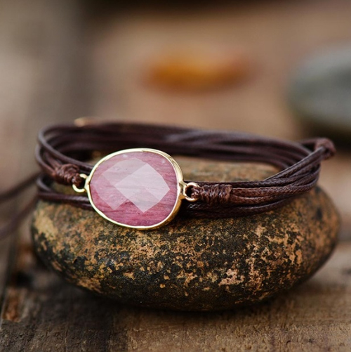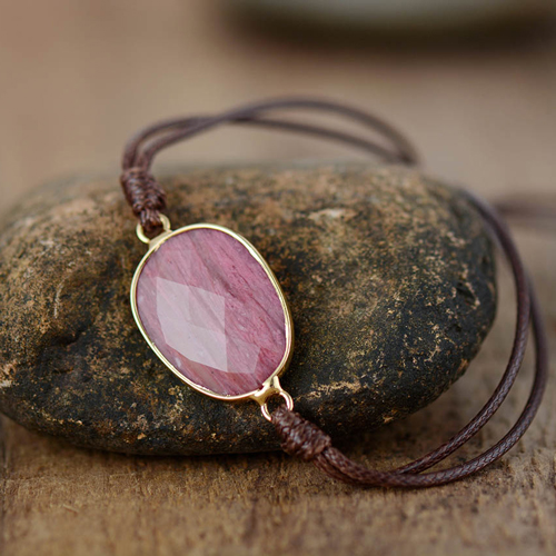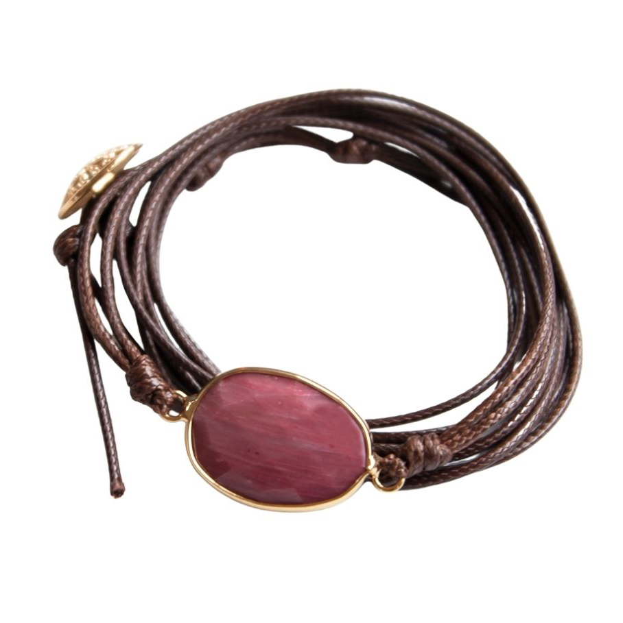 Wikkel Armband Edelsteen Rhodoniet Donkerbruin Waxcord