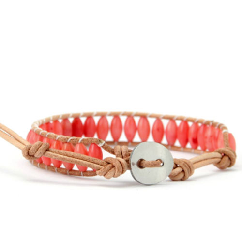 Ben je klaar om je sieradencollectie uit te breiden met iets bijzonders? Deze prachtige armband van Marama is precies wat je zoekt. Met een combinatie van lichtbruin leer en roze jade edelstenen, is deze damesarmband een prachtige aanvulling op elke outfit. De handgemaakte afwerking zorgt ervoor dat elk stuk uniek is en met liefde is gemaakt.