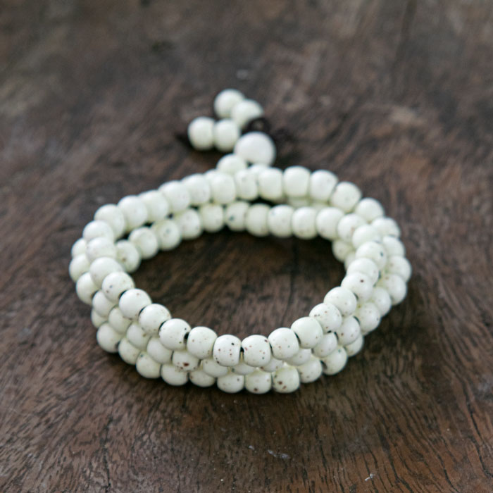 Deze stijlvolle Mala armband is voorzien van keramische kralen. De elastische armband wikkel je een aantal keer om je pols, en kan ook als ketting worden gedragen. De ketting beschikt over 108 natuurlijke kralen van 6 mm. Deze handgemaakte armbanden zijn stuk voor stuk uniek! Leuk om cadeau te geven. Je ontvangt deze armband in een luxe geschenkdoos.