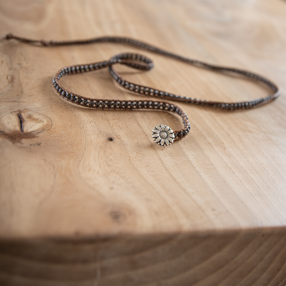 De wikkelarmband is 104 cm lang en heeft 3 sluitstanden. Wordt geleverd in een luxe geschenkdoos.