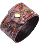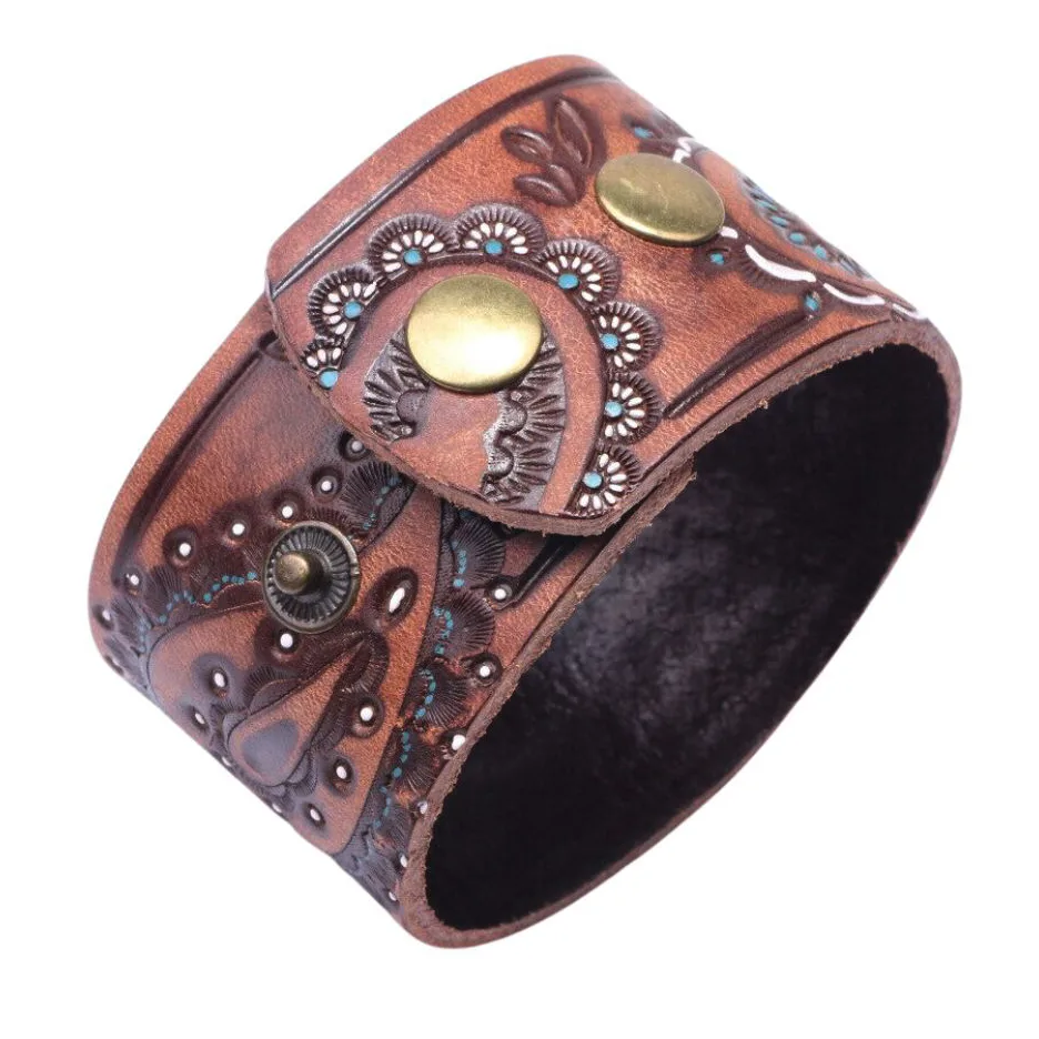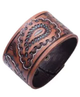 Voeg een vleugje stijl toe aan je outfit met deze leren armband. Met zijn opvallende paisley-print en warme bruine kleur is deze armband geschikt voor zowel dames als heren. Gemaakt van hoogwaardig leer, biedt deze armband een origineel ontwerp en duurzaamheid. Met de handige drukknopen kun je de maat eenvoudig aanpassen voor een perfecte pasvorm. Upgrade je accessoirecollectie met deze lederen armband die jouw persoonlijke stijl laat stralen.