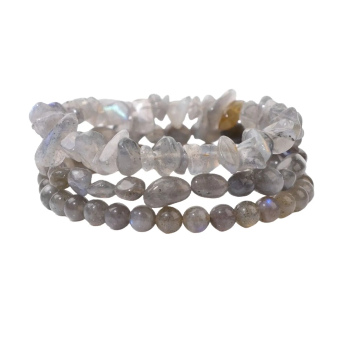 Ontdek de betovering van edelsteen Labradoriet met dit elegante armbandenset van 3 stuks. Deze prachtige elastische armbanden zijn gemaakt van echte edelstenen en stralen een mooie grijze kleur uit. Perfect voor dames die op zoek zijn naar een vleugje stijl en stoerheid. Voeg deze set toe aan je sieradencollectie en geniet van de positieve energie van Labradoriet, terwijl je er tegelijkertijd fantastisch uitziet.