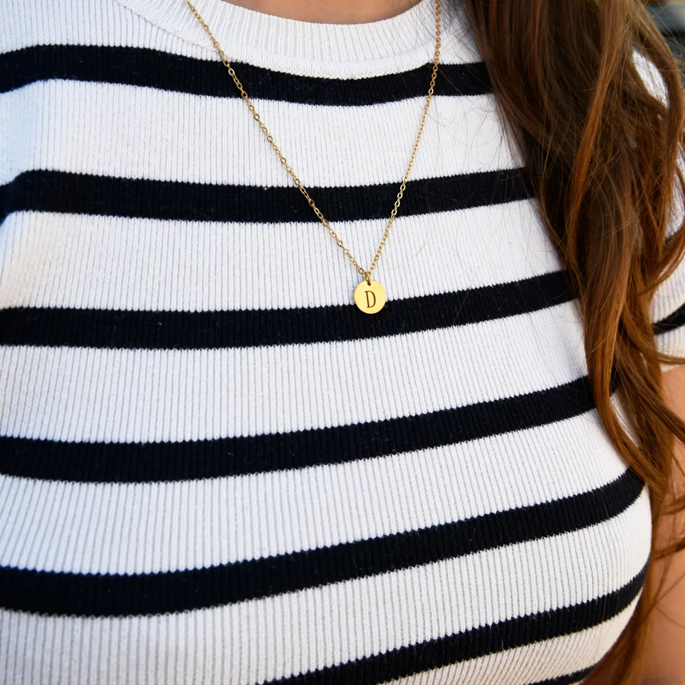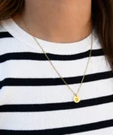- Gepersonaliseerd Sieraad: Personaliseer je ketting met initialen naar keuze. De hanger, met een diameter van 1 cm, biedt subtiele elegantie en een persoonlijke touch.