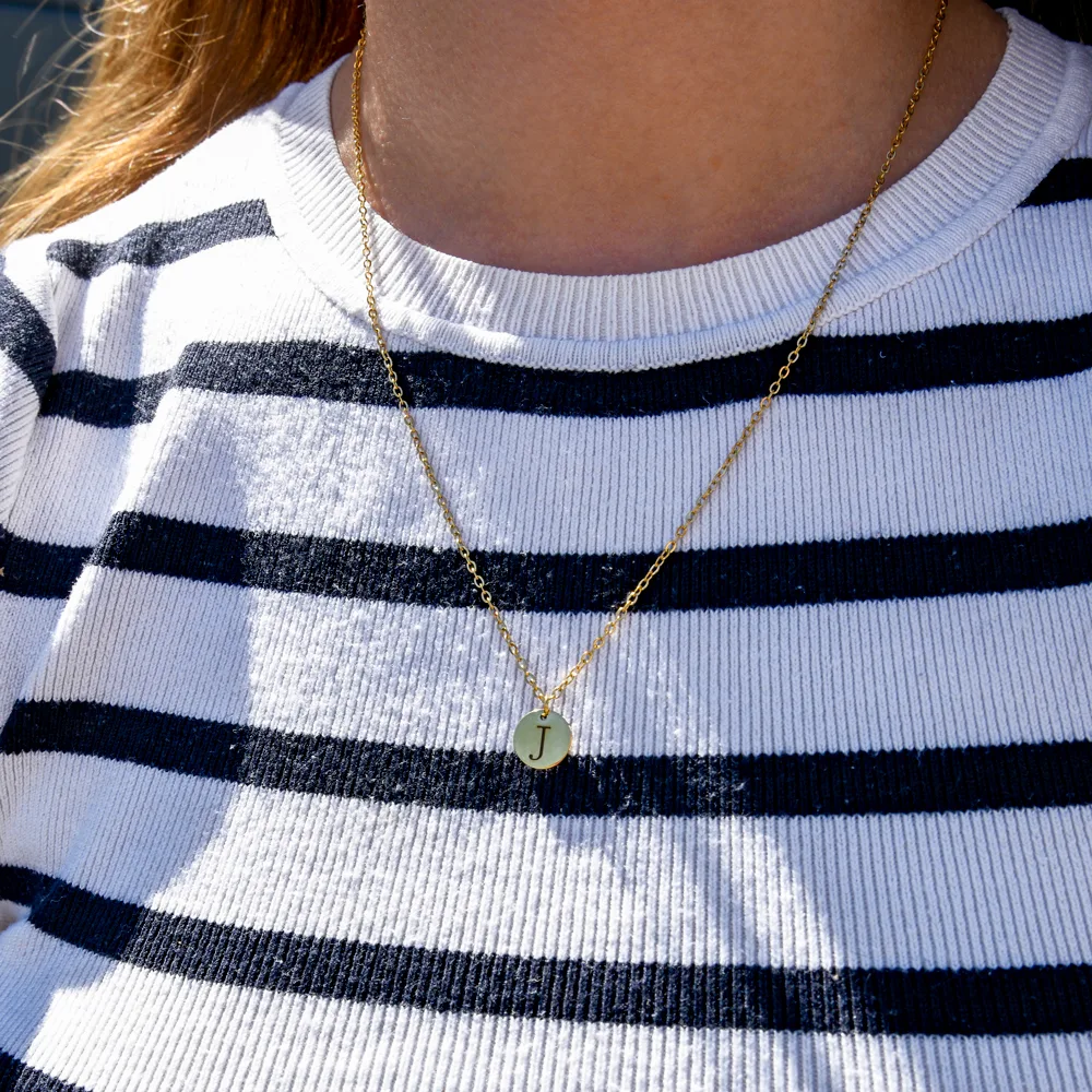 • Gepersonaliseerd Sieraad: Personaliseer je ketting met initialen naar keuze. De hanger, met een diameter van 1 cm, biedt subtiele elegantie en een persoonlijke touch.