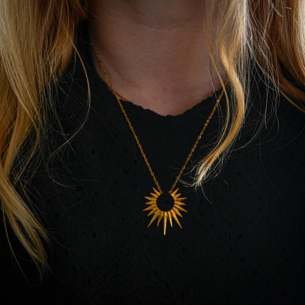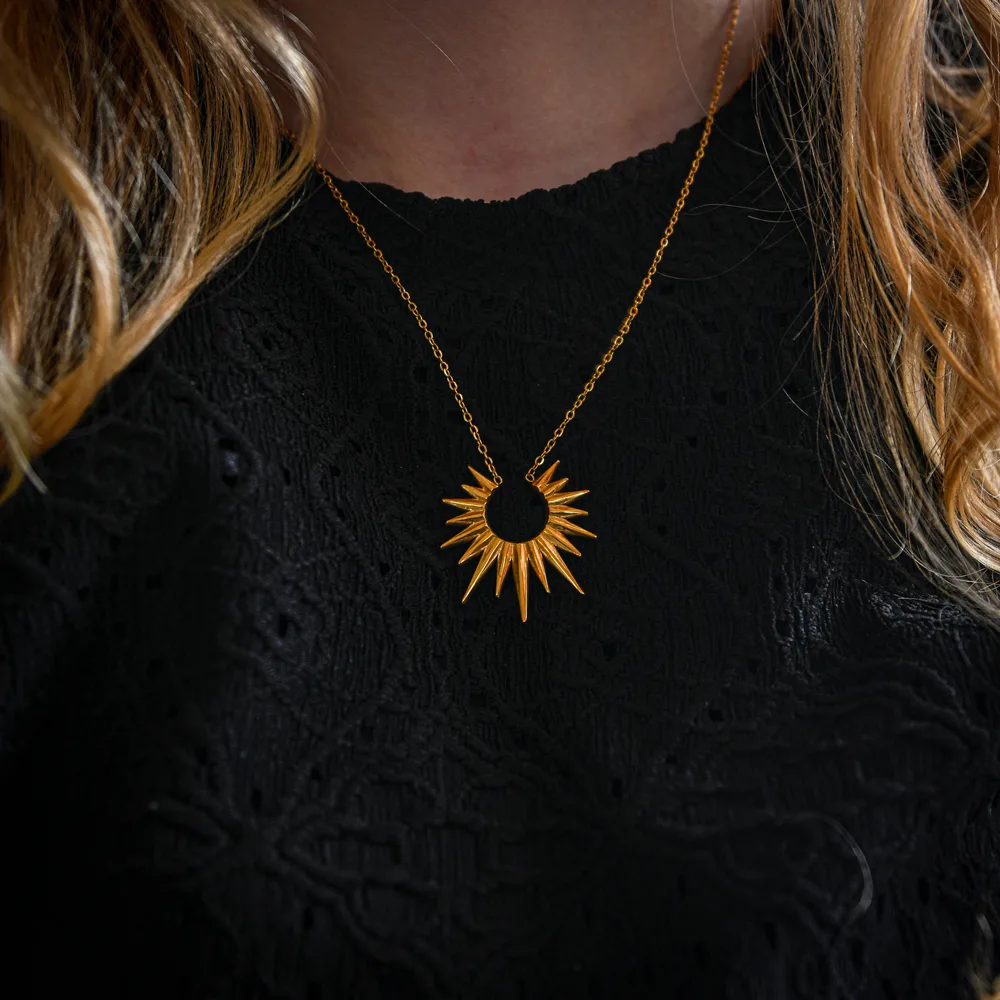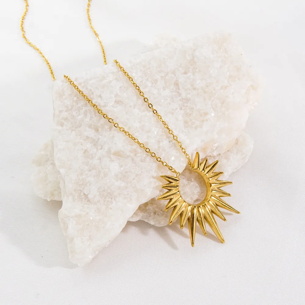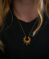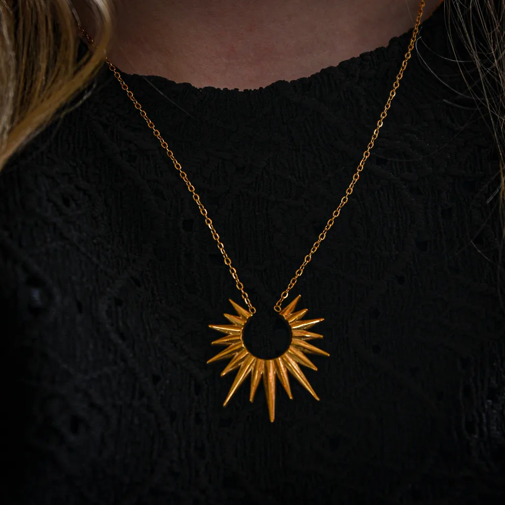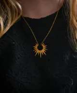 Voeg een vleugje zonneschijn toe aan je look met deze gouden ketting met een stralend zonnetje, gemaakt van stainless steel en gold plated. Het bedel in de vorm van een zonnetje symboliseert warmte en gezelligheid, en maakt van deze ketting een perfect accessoire voor elke gelegenheid. De gold plated afwerking zorgt voor een luxueuze uitstraling die niet vervaagt. Deze ketting is een must-have voor wie houdt van een vleugje goud in haar sieradencollectie. Met het tijdloze ontwerp is het een prachtige aanvulling op je dagelijkse outfits en een geweldig cadeau voor een dierbare.