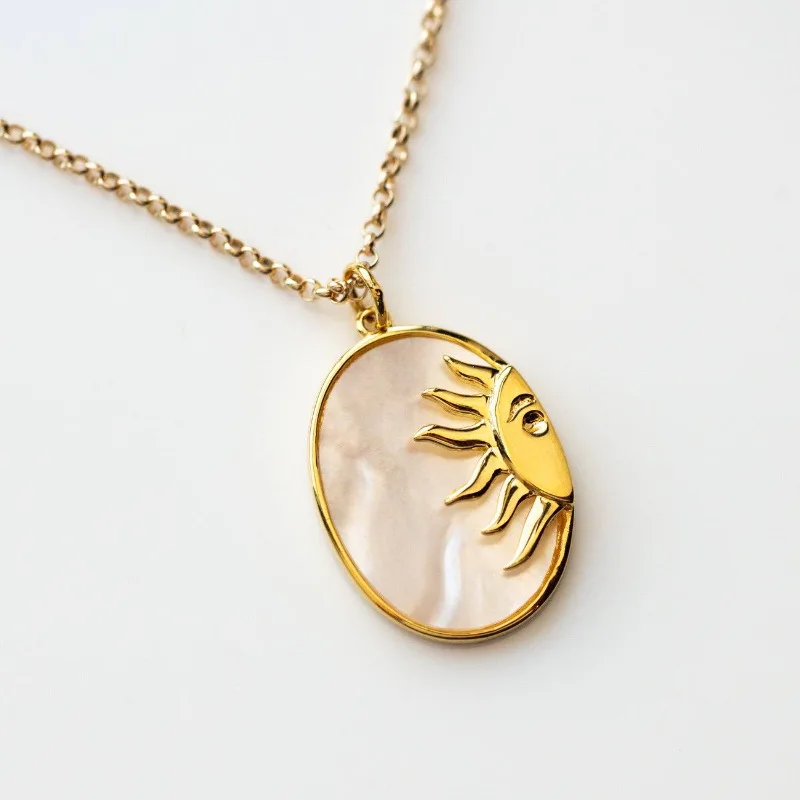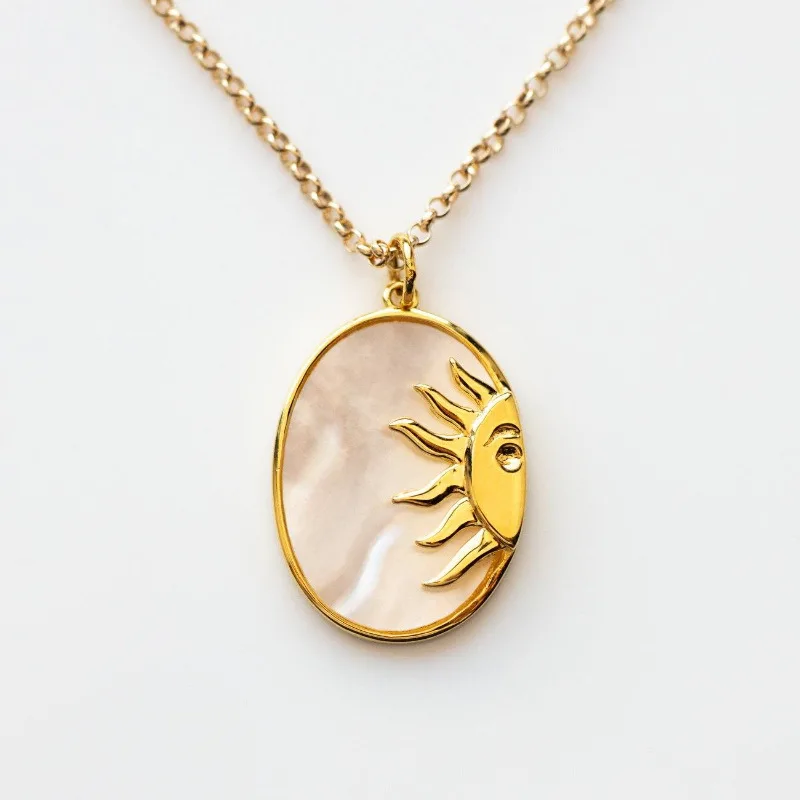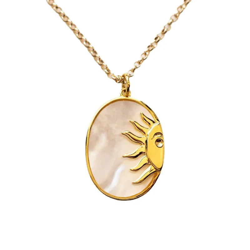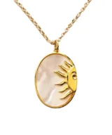 De Ketting Oval Sun is een stijlvolle en tijdloze damesketting die perfect is als cadeau of om jezelf te verwennen. De ketting straalt elegantie uit met een unieke ovale hanger voorzien van een zon in reliëf. Deze prachtige ketting combineert hoogwaardige materialen met verfijnd design.