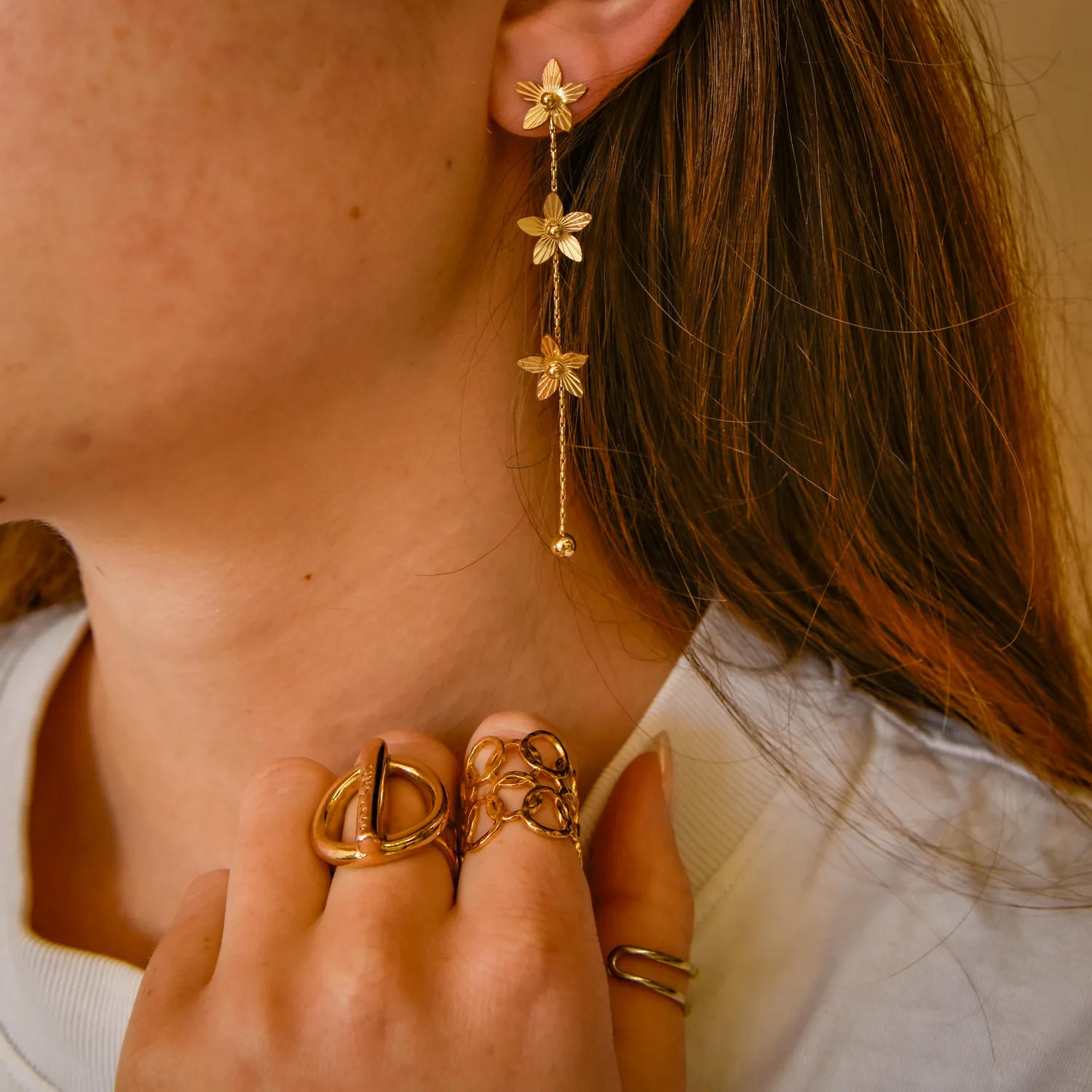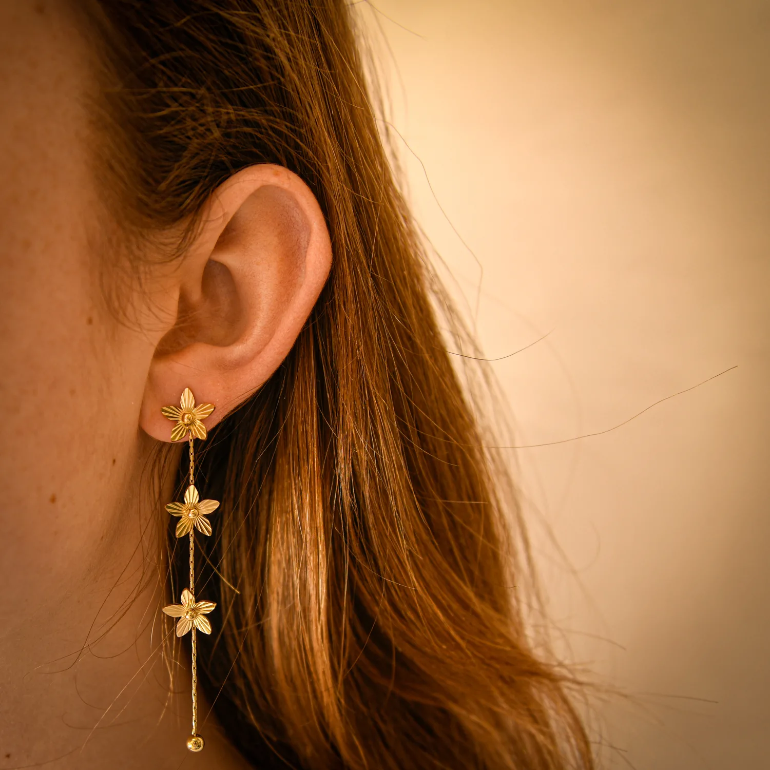 Gemaakt van hoogwaardig stainless steel en afgewerkt in een prachtige gold colored tint, bieden deze oorbellen een luxe uitstraling en langdurige glans. De delicate bloemen hangers geven een romantische en vrouwelijke touch aan je sieradencollectie.