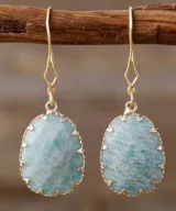 Zoekwoorden: oorbellen goud Amazoniet, blauwe edelsteen oorhangers, gouden oorbellen dames, cadeau oorbellen, ovale oorbellen.