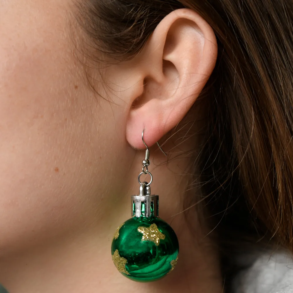 De Kerstbal oorhangers zijn het ideale accessoire om je look op te vrolijken of als cadeau voor een geliefde die houdt van de feestelijke sfeer. Voeg een sprankje kerstmagie toe aan je stijl en maak indruk met deze charmante, feestelijke oorbellen!