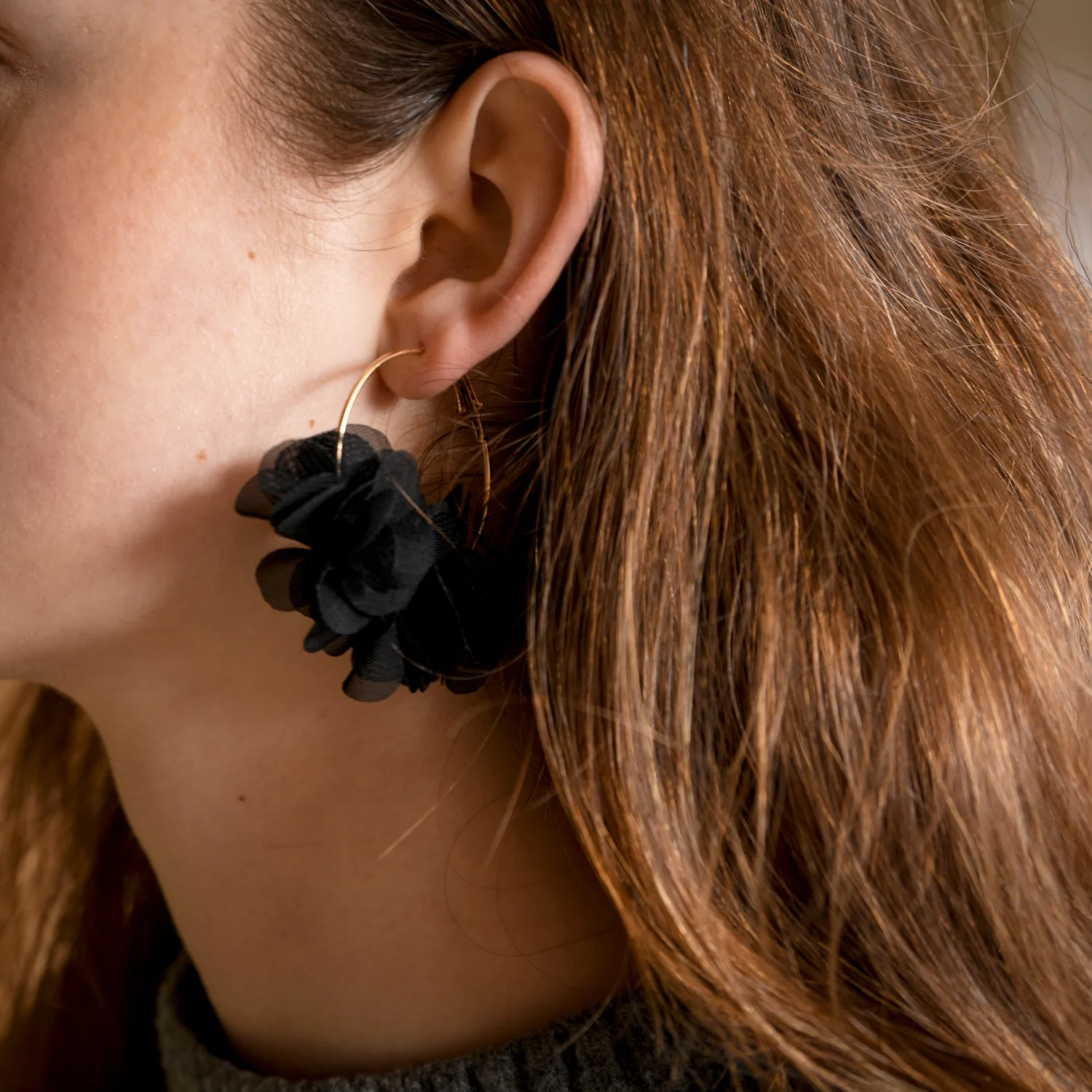 Oorbellen Lola – Oorringen met bloemblaadjes zwart