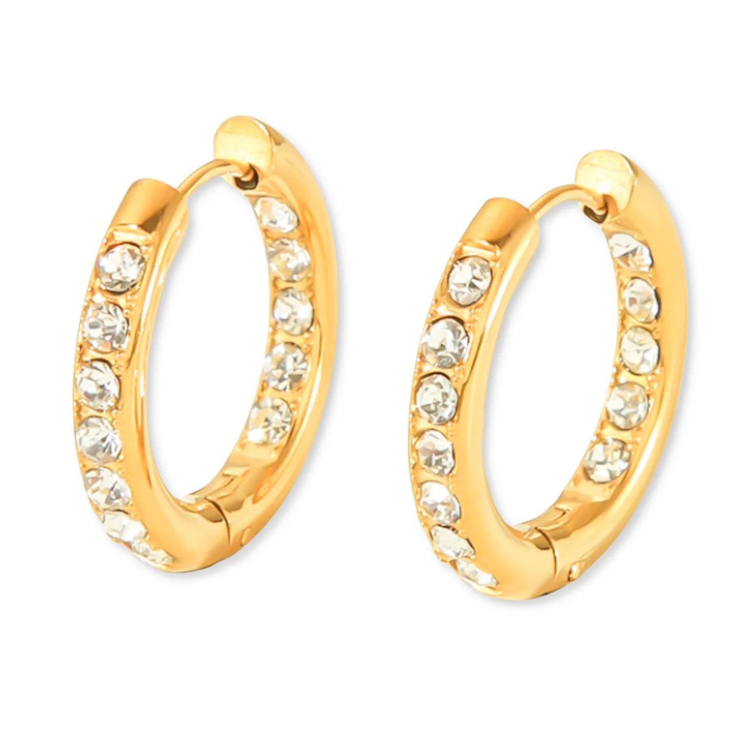 Voeg een vleugje luxe toe aan je look met deze prachtige gouden oorbellen voor dames. Vervaardigd uit hoogwaardig stainless steel en afgewerkt met een duurzame gold plated laag, stralen deze oorbellen pure elegantie uit. De schitterende zirkonen details vangen het licht op en geven je een glamoureuze uitstraling.