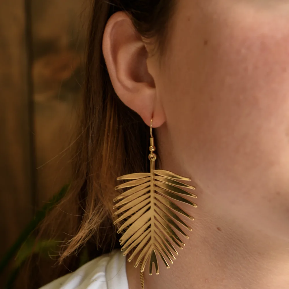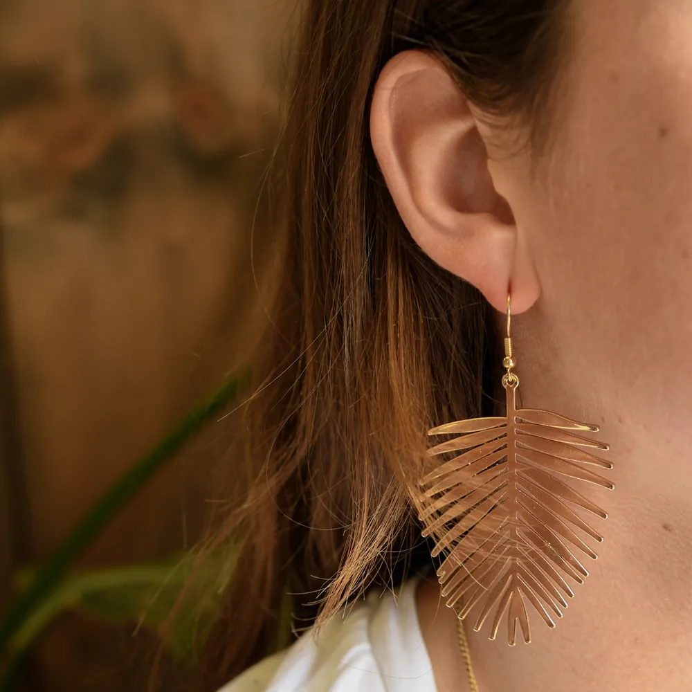 Breng een vleugje tropische flair in je sieradencollectie met deze prachtige dames oorbellen, geïnspireerd door de schoonheid van palm leafs. Deze stijlvolle oorbellen zijn de perfecte accessoire voor de zomer, en voegen een exotische touch toe aan elke outfit. Met hun gedetailleerde ontwerp van blaadjes, brengen ze een natuurlijke elegantie en frisheid die ideaal is voor zonnige dagen.