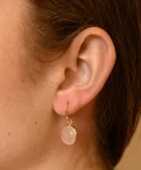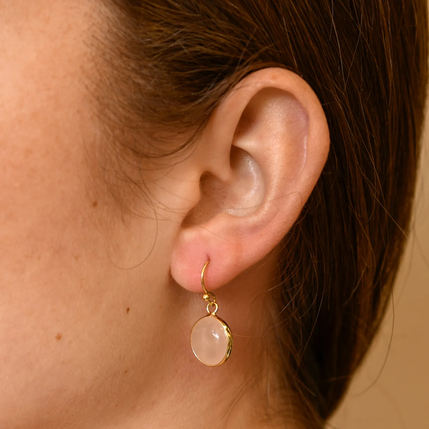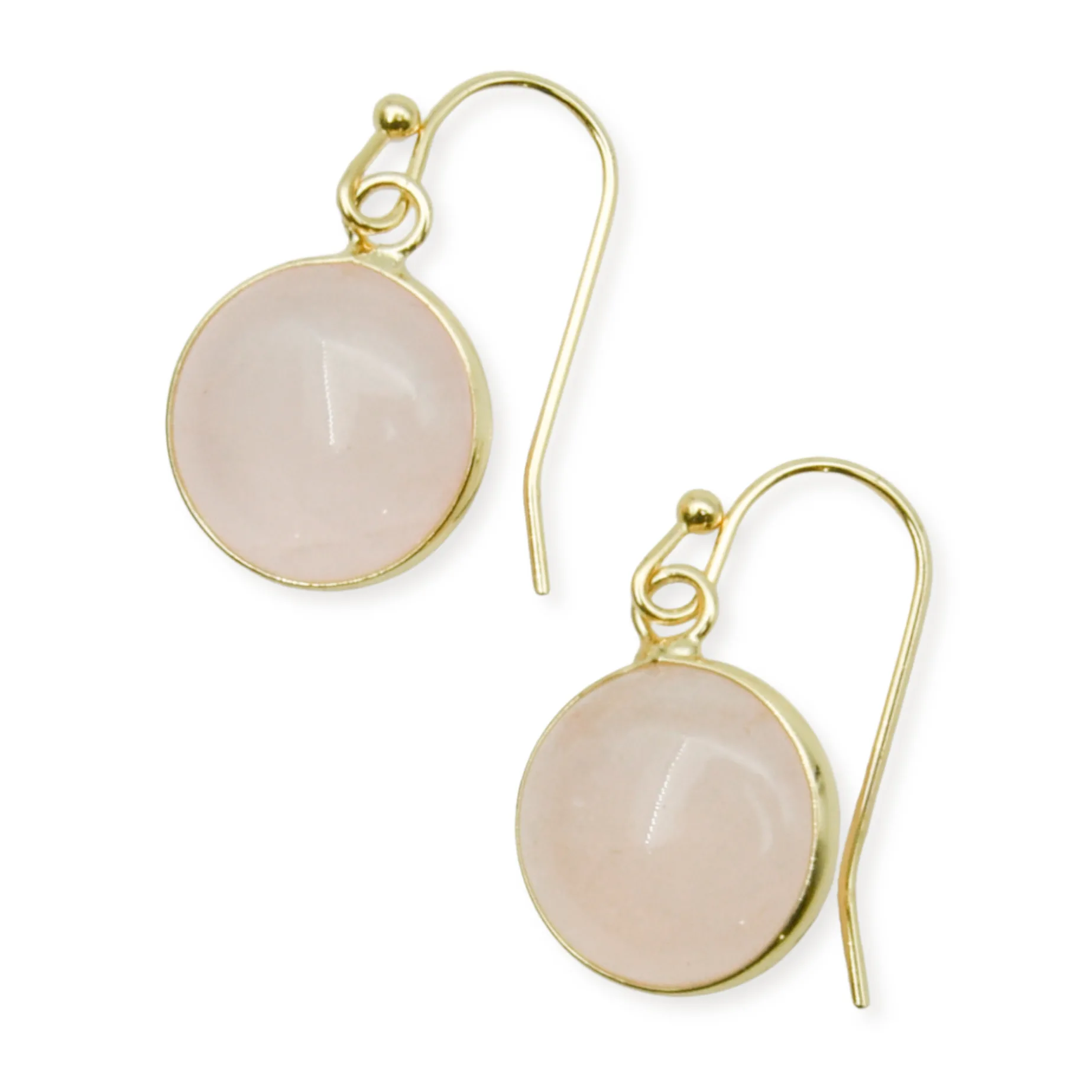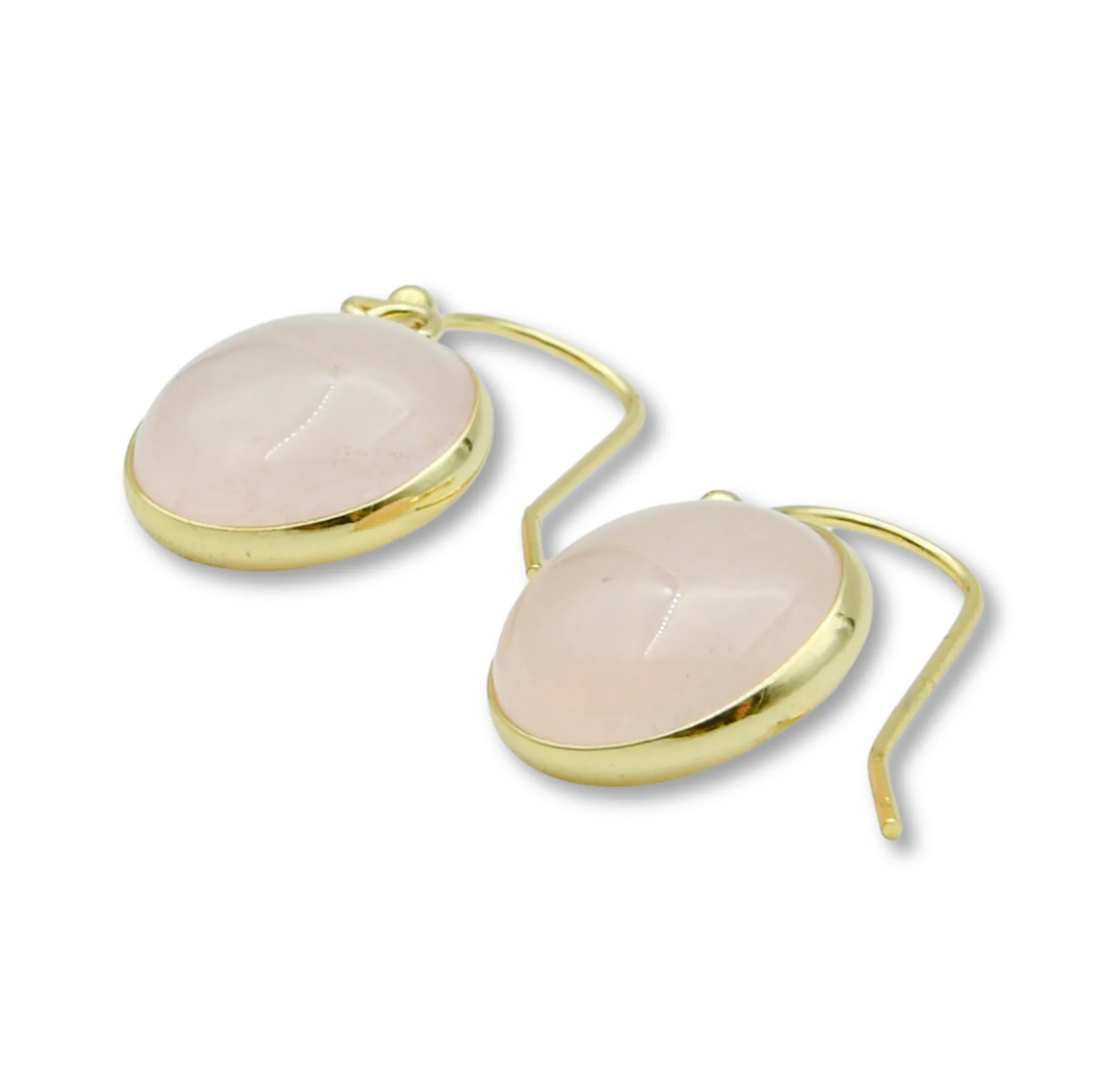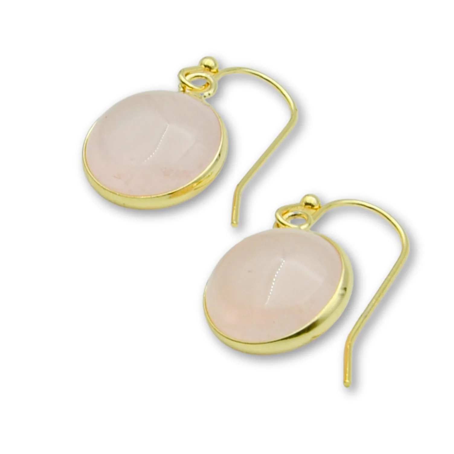 Oorbellen Rond Rose Quartz – Edelsteen Rozenkwarts | Goudkleurig | Subtiele Oorhangers