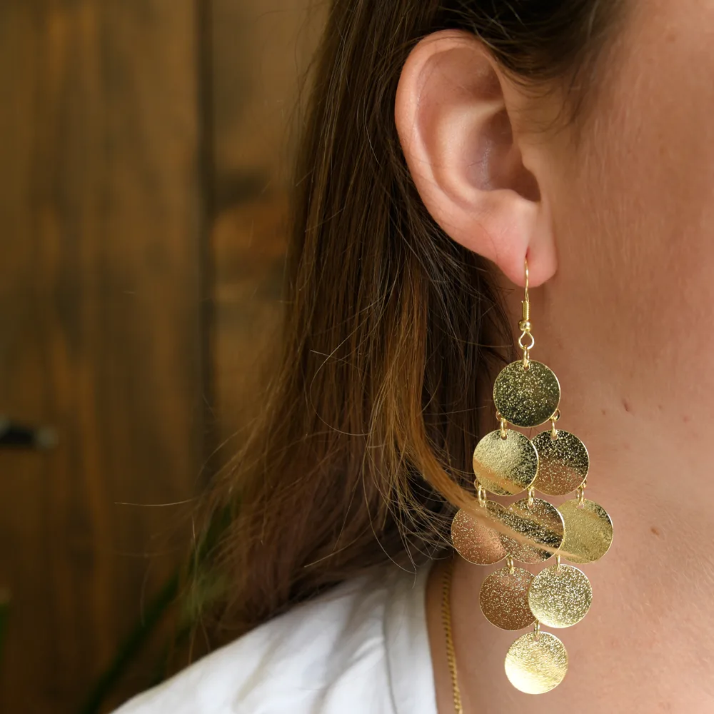 Ontdek deze perfecte feestelijke oorbellen voor vrouwen. De oorbellen zijn voorzien van schitterende hangers en elegante muntjes, ideaal om elke outfit compleet te maken. Deze oorbellen zijn ontworpen met oog voor detail en stijl, waardoor ze een onmisbaar item zijn in de sieradencollectie van elke vrouw.