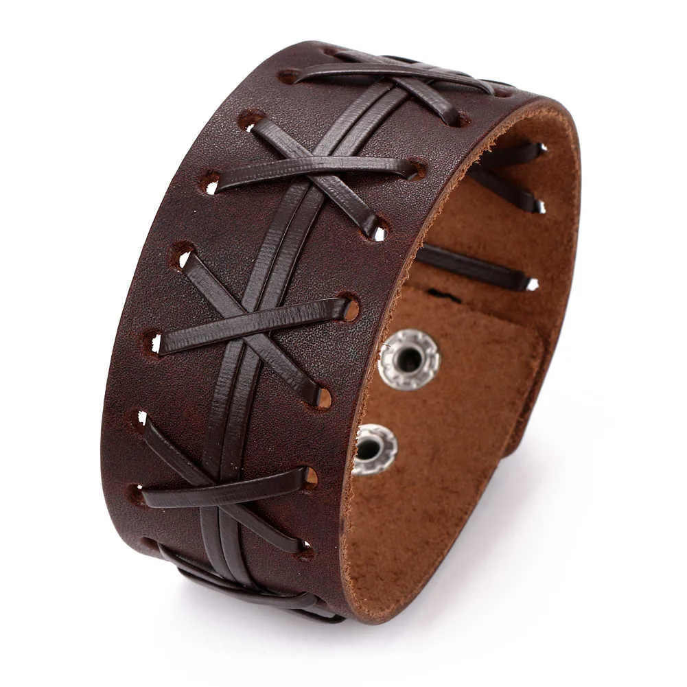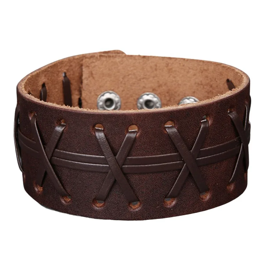 Ben je op zoek naar een stoere en stijlvolle armband die perfect past bij jouw mannelijke uitstraling? Dan is de Herenarmband leer Cross Brown precies wat je zoekt! Deze brede leren armband met gekruist motief is niet alleen een eyecatcher om je pols, maar ook nog eens verstelbaar voor een optimale pasvorm.