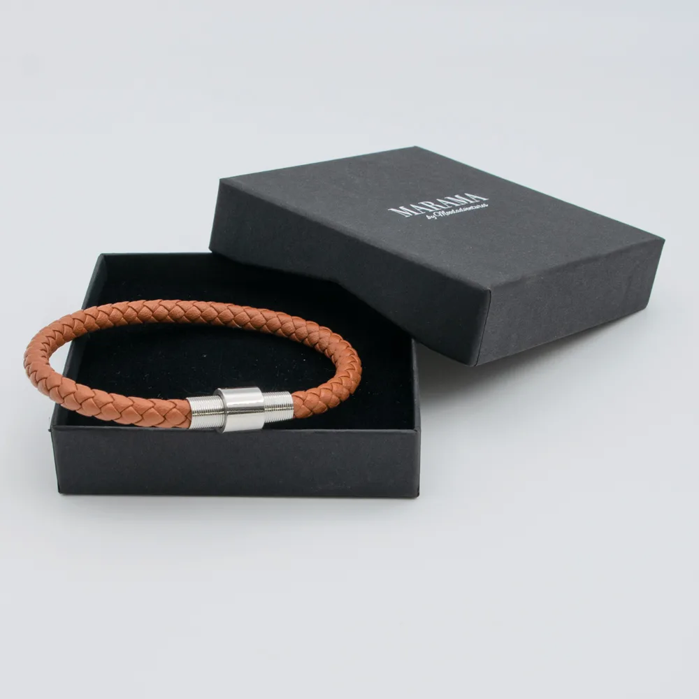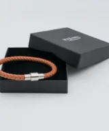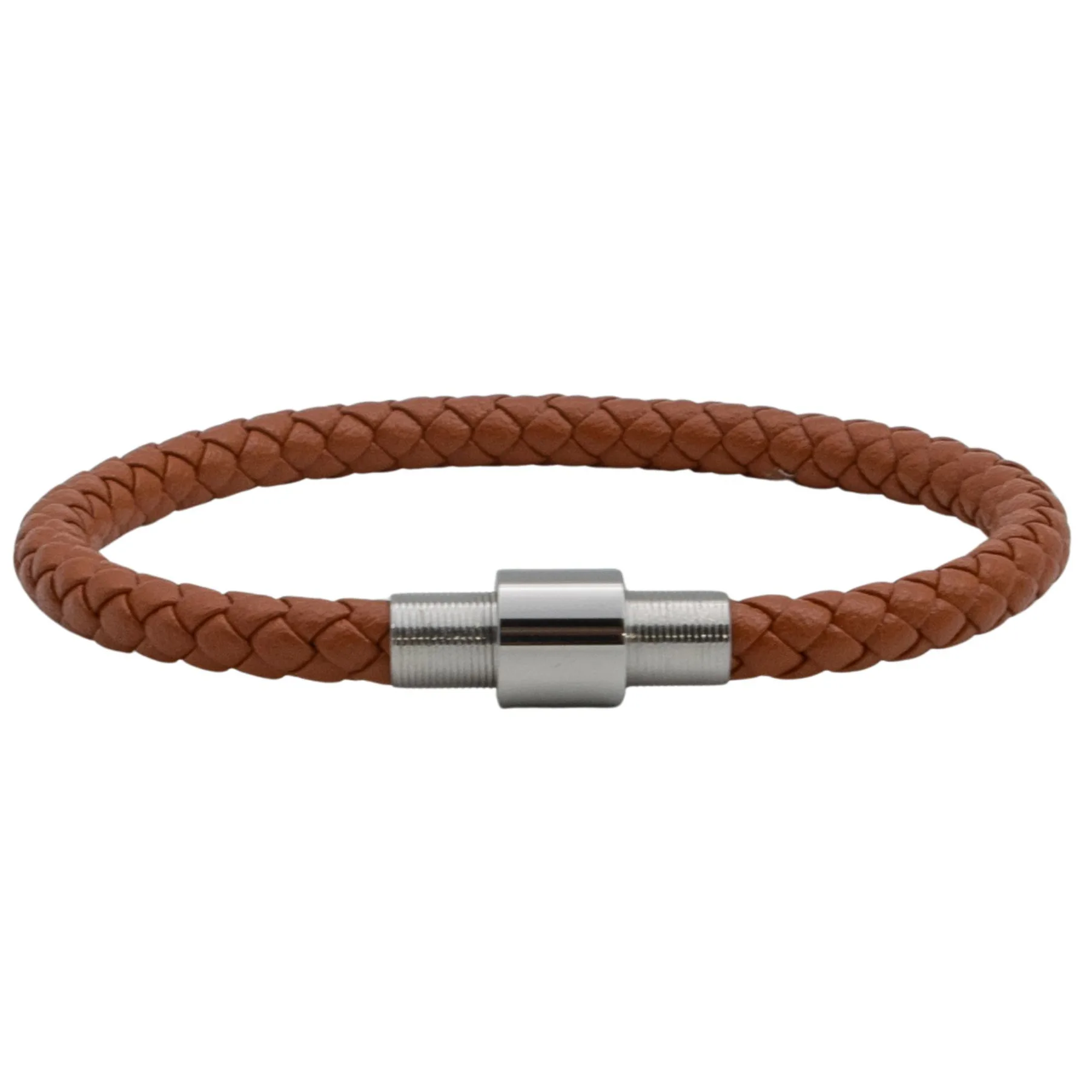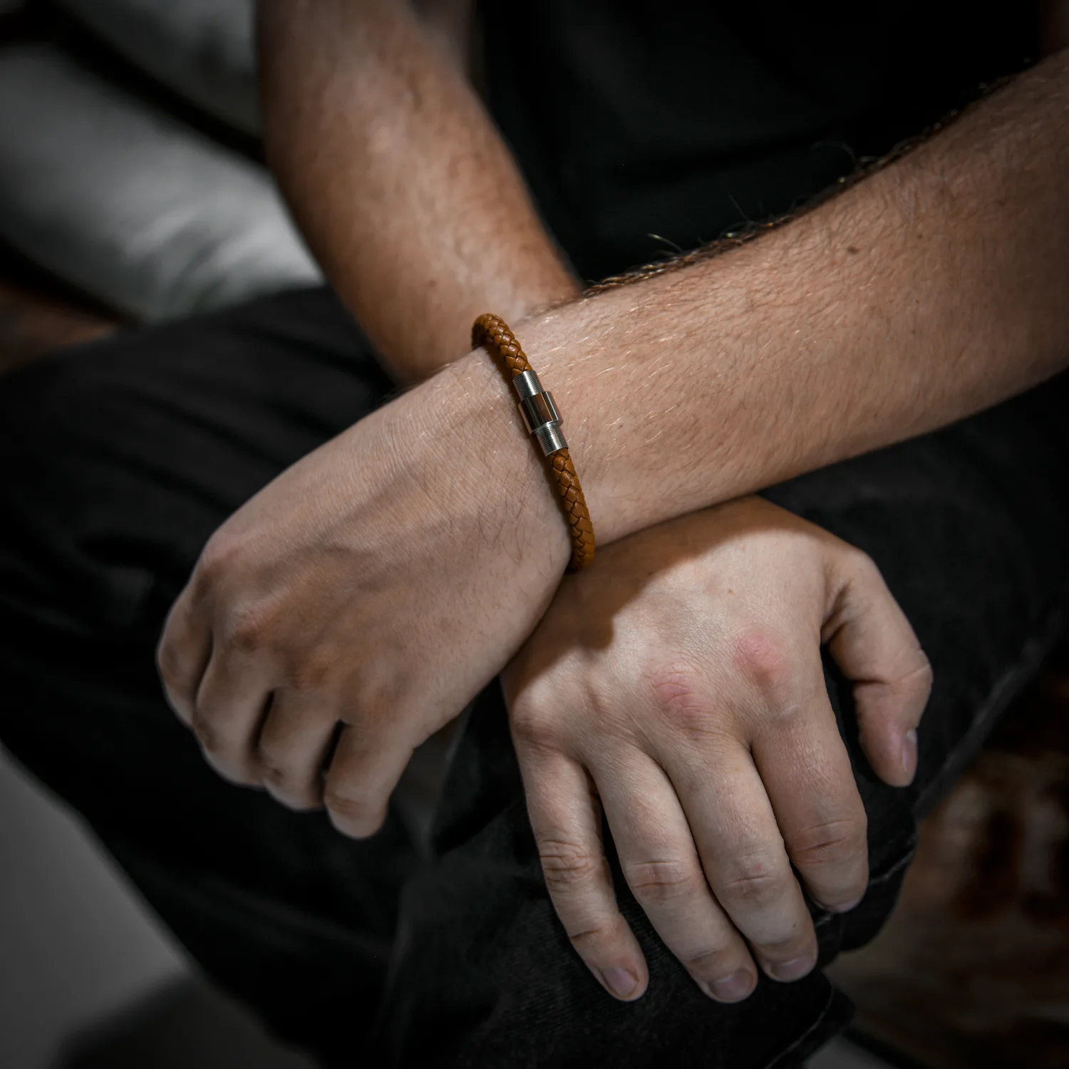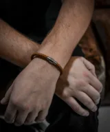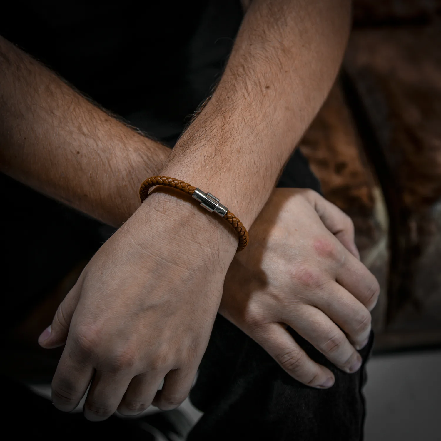 Het gevlochten leerontwerp geeft de armband een stoere en robuuste look die moeiteloos bij elke outfit past.