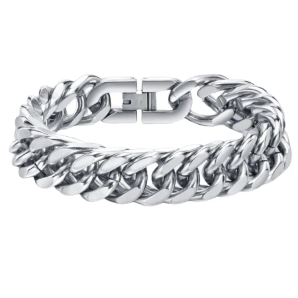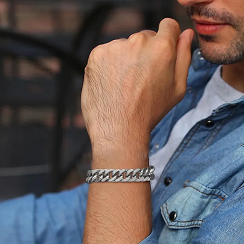 Deze Cubaanse armband voegt moeiteloos een vleugje verfijning toe aan elke outfit, of je nu casual gekleed gaat of je op je best moet presenteren bij formele gelegenheden. De stevige schakels geven de armband een stoere uitstraling, terwijl het zilveren design een klassieke elegantie behoudt.