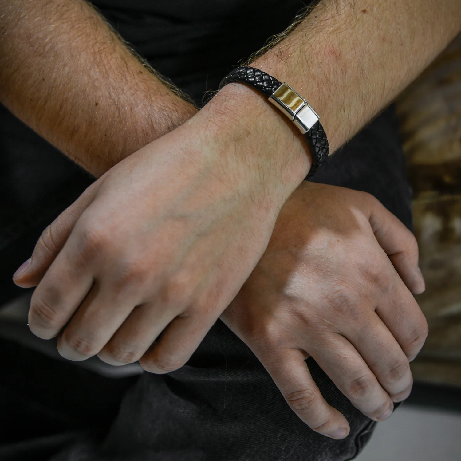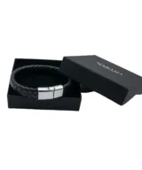 Deze gevlochten herenarmband Ivar is gemaakt van hoogwaardig vegan leer en voorzien van een robuuste rvs-schuifsluiting, waardoor hij zowel duurzaam als trendy is. De armband heeft een makkelijk te dragen ontwerp dat comfortabel om de pols zit, zonder in te leveren op stijl. Het strakke design maakt het de perfecte keuze voor elke man die houdt van een moderne, mannelijke look. Deze armband is een geweldig cadeau voor jezelf of iemand anders. Combineer stoer en stijlvol met deze tijdloze armband, ideaal voor elke gelegenheid.