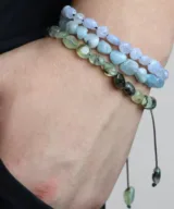 Op zoek naar een stijlvol en uniek accessoire voor heren? De heren armband Joël is een echte eyecatcher. Deze handgemaakte armband is vervaardigd uit stevig waxkoord en afgewerkt met een natuurlijke edelsteen: mosagaat. De prachtige groentinten van de steen symboliseren rust, balans en verbinding met de natuur.