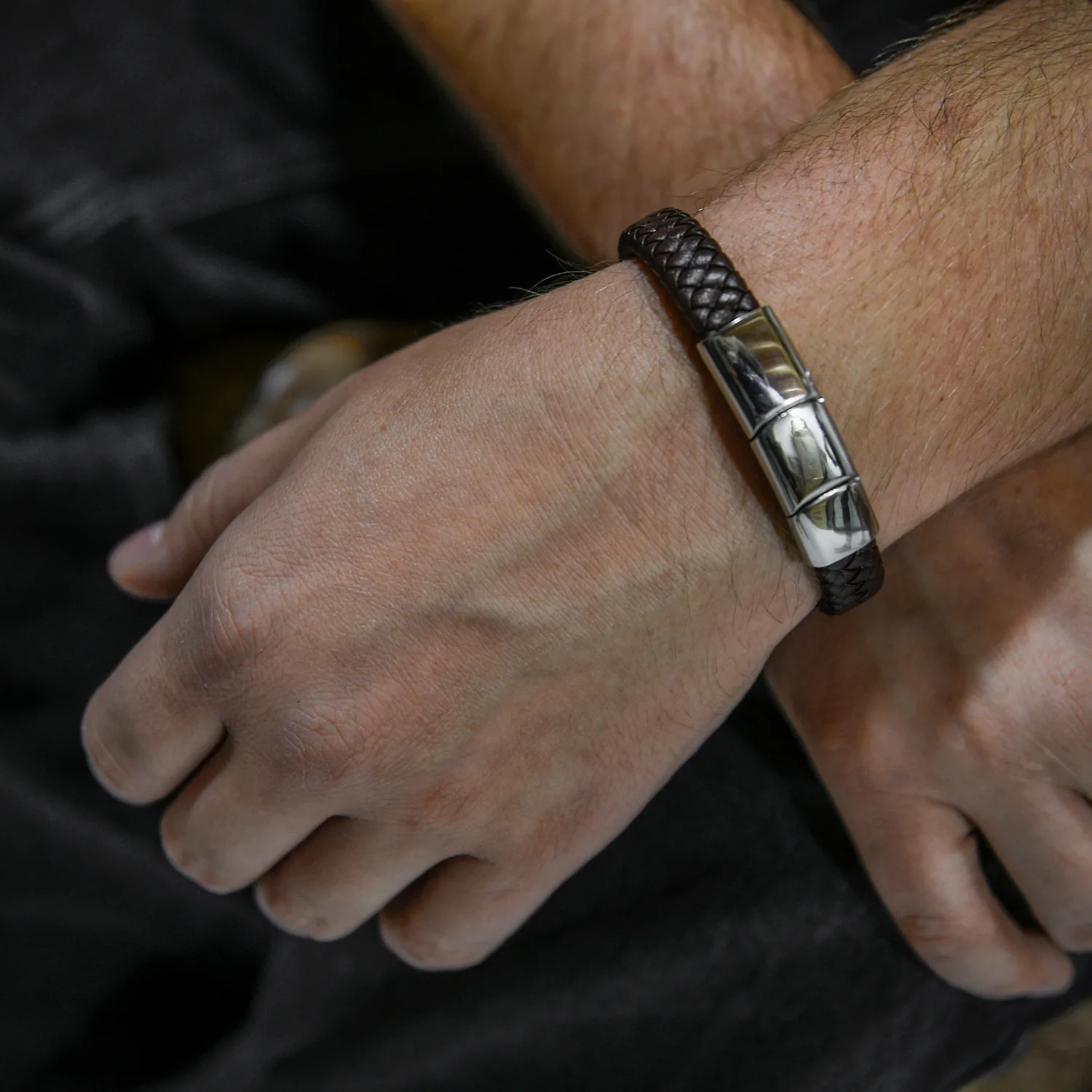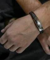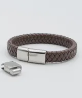 Op zoek naar een stoere en robuuste herenarmband die past bij elke outfit? Deze armband van gevlochten donkerbruin leer is de perfecte keuze. Gemaakt van hoogwaardig leer, straalt de armband kracht en stijl uit. Het gevlochten patroon geeft een authentieke en mannelijke uitstraling, ideaal voor mannen die van een ruige look houden.
