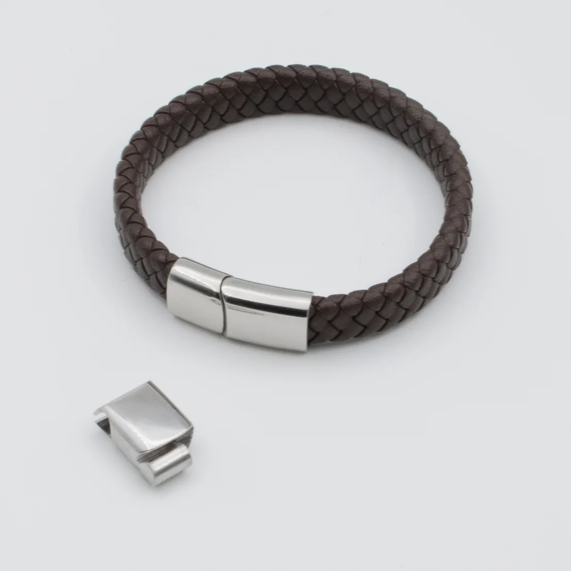 De armband is voorzien van een zilveren schuifsluiting, het middelste gedeelte van de sluiting kun je verwijderen waardoor de armband los of strak om de pols gedragen kan worden. Dit zorgt niet alleen voor een veilige bevestiging, maar ook een stijlvolle touch. De zilveren sluiting contrasteert prachtig met het donkerbruine leer, waardoor de armband een echte blikvanger is. De schuifsluiting is eenvoudig te gebruiken en houdt de armband stevig om de pols, zelfs bij dagelijks gebruik.