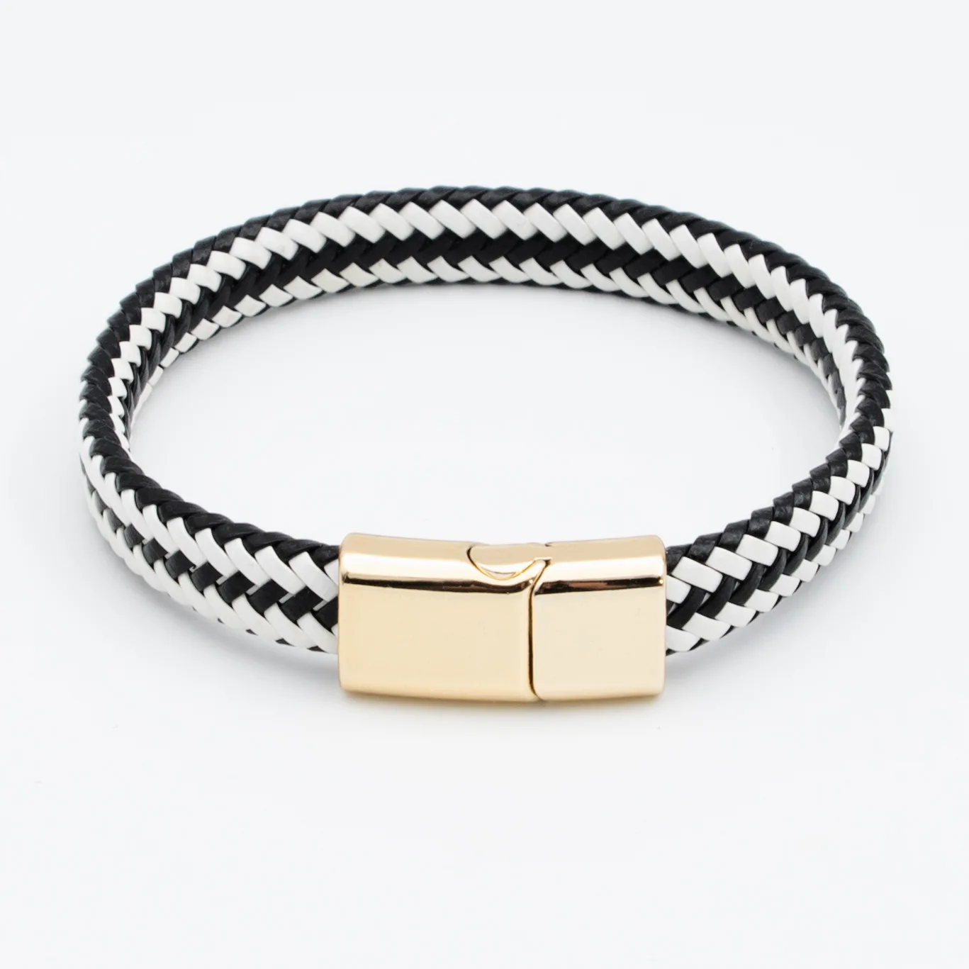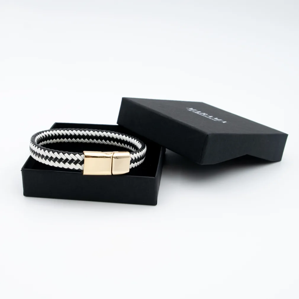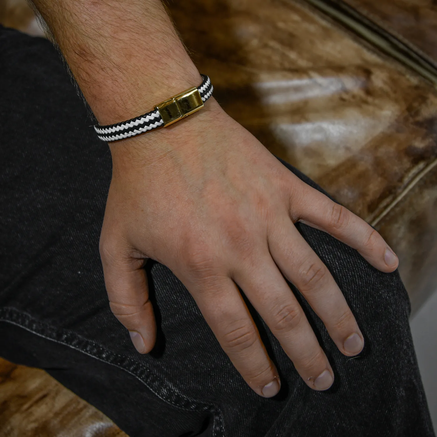 Herenarmband Mats Zwart Wit – Sluiting Metaal Goud