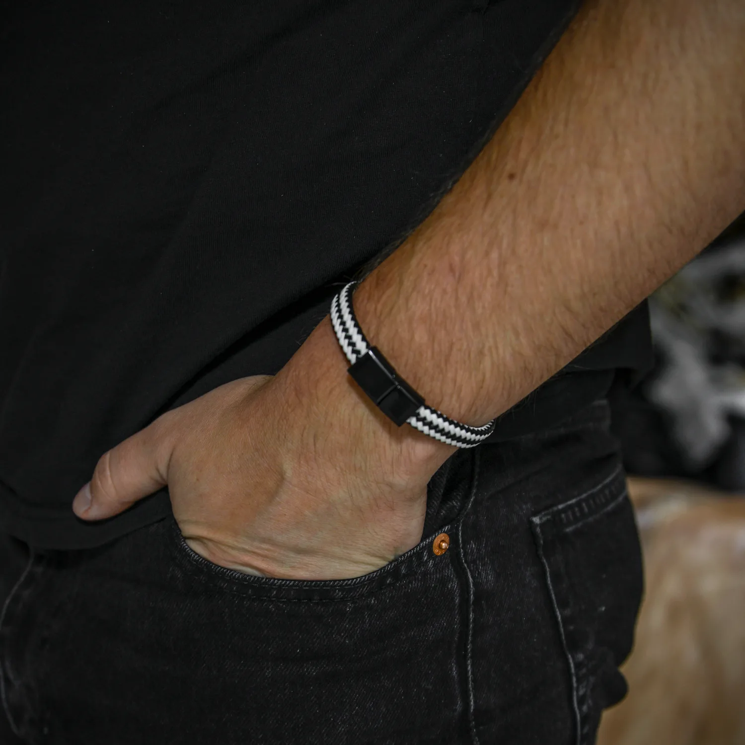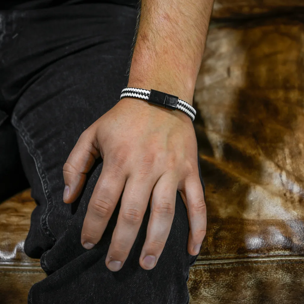 Herenarmband Mats Zwart Wit – Sluiting Metaal Zwart