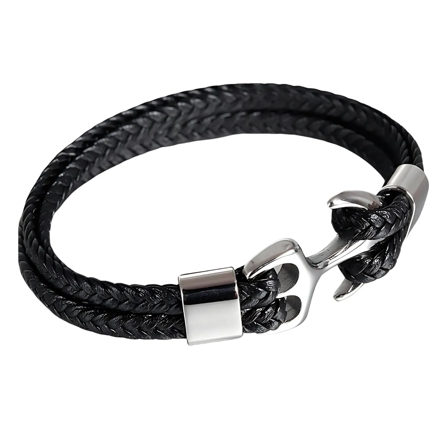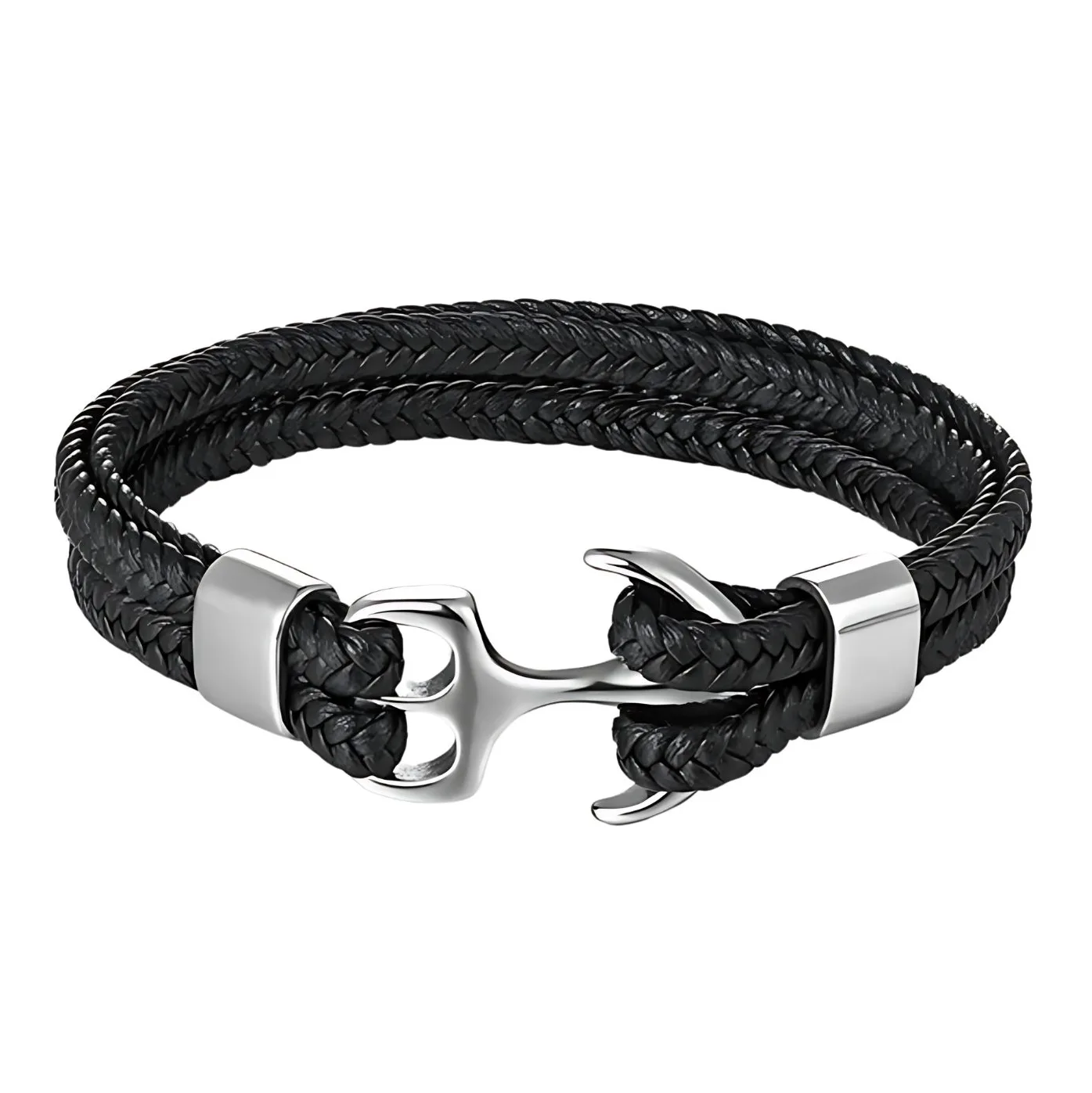 Op zoek naar een stoer en stijlvol accessoire voor heren? Deze unieke herenarmband met vier gevlochten banden van stevig PU-leer is precies wat je nodig hebt. De armband is zorgvuldig ontworpen met robuuste, gevlochten banden die samenkomen in een opvallende zilveren ankersluiting. Deze sluiting zorgt niet alleen voor een stevige grip, maar geeft de armband ook een stoere en maritieme uitstraling.