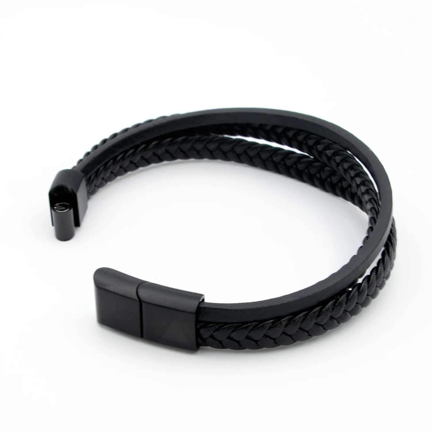 Deze gevlochten herenarmband Thor is gemaakt van hoogwaardig vegan leer en voorzien van een robuuste rvs-schuifsluiting, waardoor hij zowel duurzaam als trendy is. De armband heeft een makkelijk te dragen ontwerp dat comfortabel om de pols zit, zonder in te leveren op stijl. Het strakke design met drie banden maakt het de perfecte keuze voor elke man die houdt van een moderne, mannelijke look. Deze armband is een geweldig cadeau voor jezelf of iemand anders. Combineer stoer en stijlvol met deze tijdloze armband, ideaal voor elke gelegenheid.