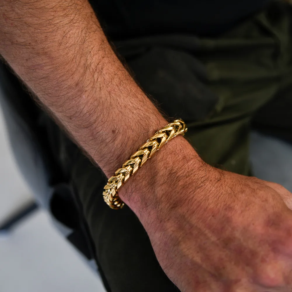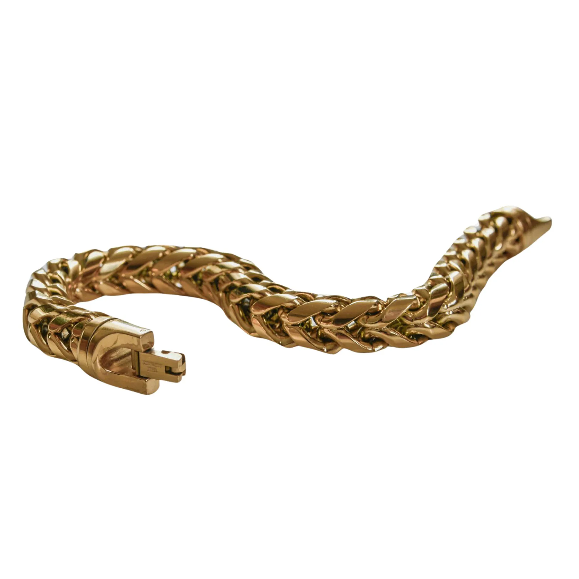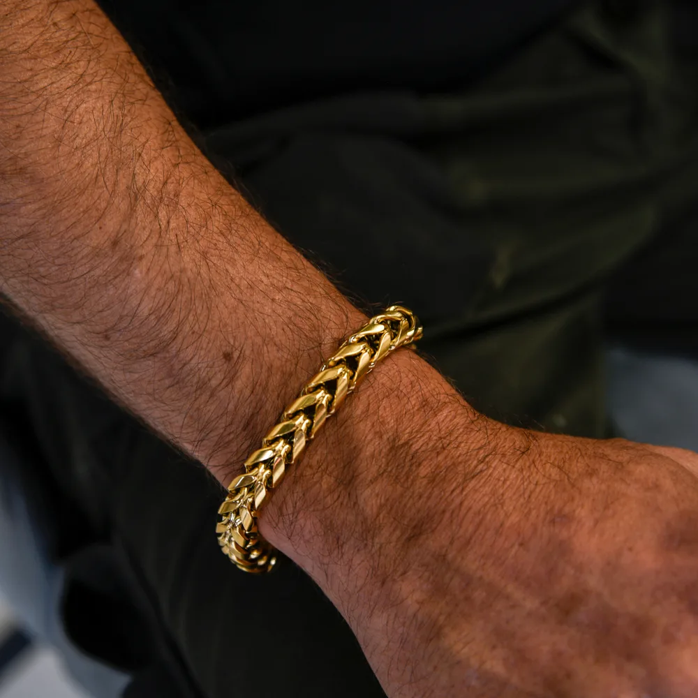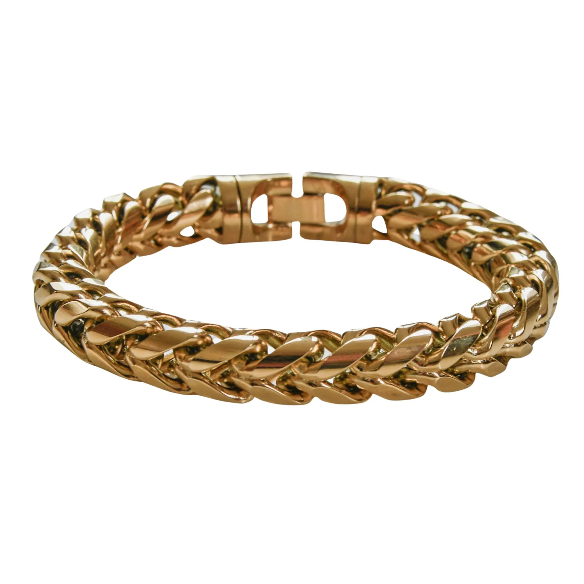 Ontdek de stoere en robuuste Viggo herenarmband, een perfecte keuze voor mannen die op zoek zijn naar een accessoire van hoogwaardige kwaliteit. Deze armband is gemaakt van duurzaam roestvrij staal en afgewerkt met een luxueuze goud plating, wat zorgt voor een tijdloze uitstraling. De franco schakel voegt een extra dimensie van stijl toe, terwijl de stevige sluiting ervoor zorgt dat de armband altijd veilig om je pols blijft zitten. De brede, mannelijke vormgeving van de Viggo armband maakt het een perfecte keuze voor elke moderne man die zijn outfit wil versterken met een krachtig statement. Perfect voor elke gelegenheid, van casual tot formeel.