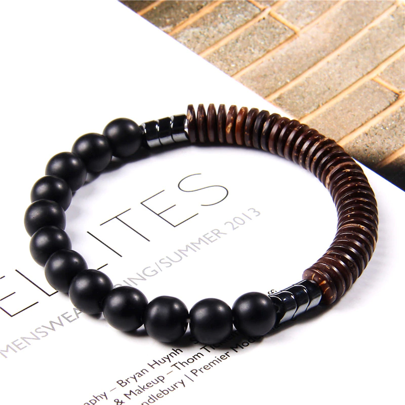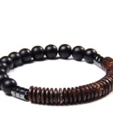 Deze stoere handgemaakte herenarmband Nevada Black beschikt over Onyx edelstenen en houten kralen. Draag de elastische armband met meerdere armbanden uit deze serie voor een mooi effect, of draag hem subtiel als enkele armband om je pols. Deze herenarmband is enorm leuk om cadeau te geven. De armband wordt geleverd in een luxe geschenkverpakking.