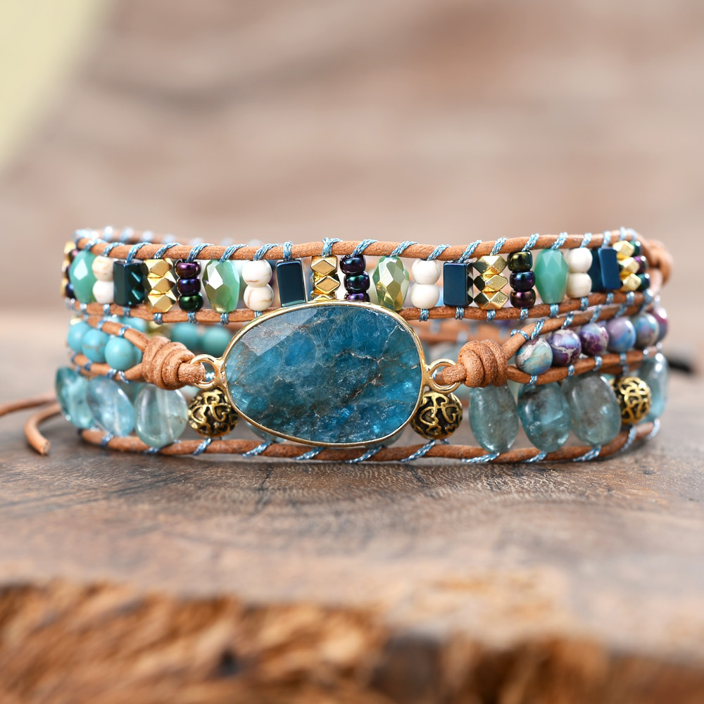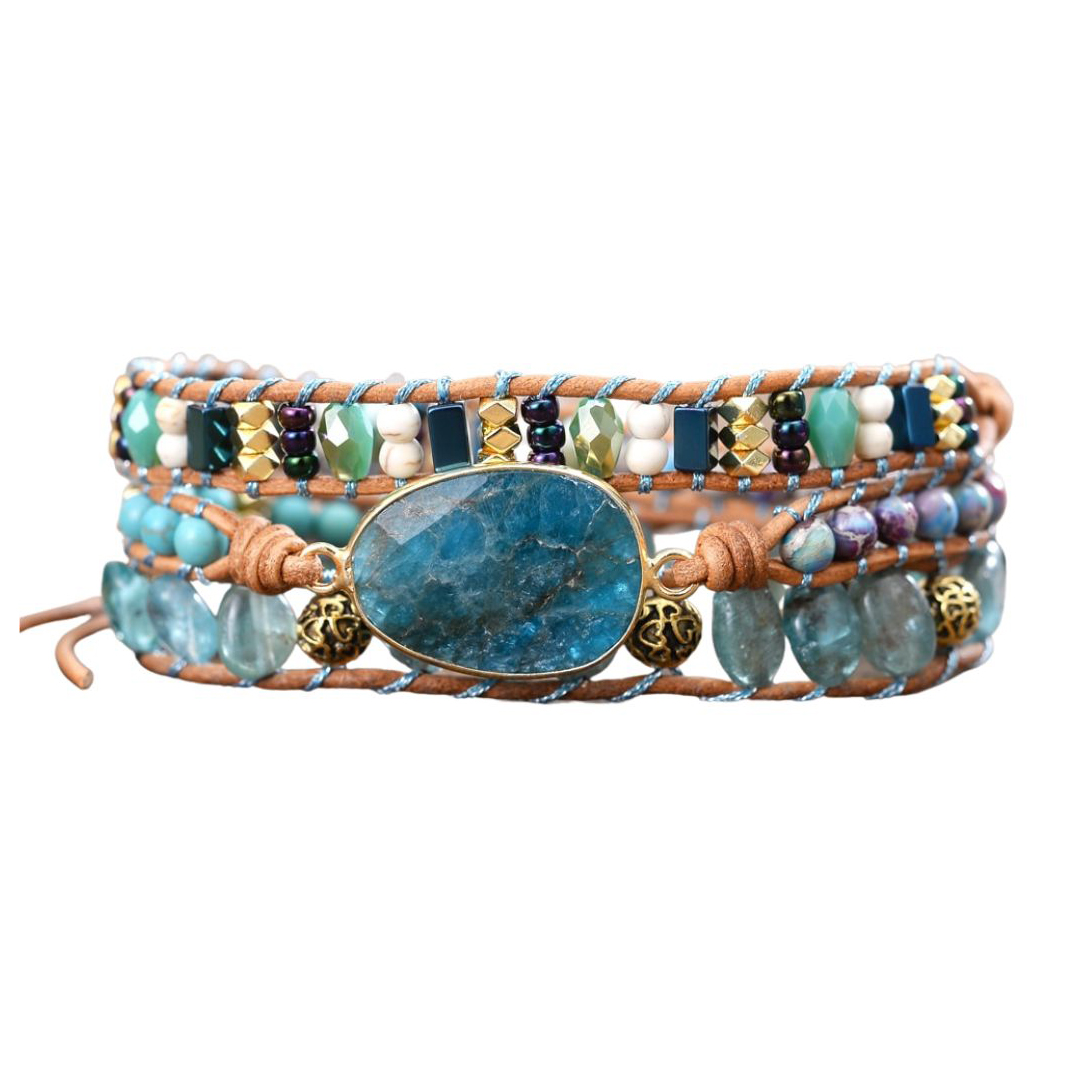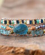 Deze trendy armband is handgemaakt van bruin leer en heeft als hoofdsteen een fonkelende blauwe jaspis edelsteen. Daarnaast is de wikkelarmband voorzien van vintage goudkleurige kralen en kleine edelstenen waaronder kristal en hematiet. Een prachtige armband die je casual of juist chique kunt dragen. De wikkelarmband is 40 cm lang en heeft 3 knoopsgaten, dus one size fits all! Een mooi cadeautje voor jezelf of iemand anders! Deze armband wordt geleverd in een luxe geschenkverpakking.