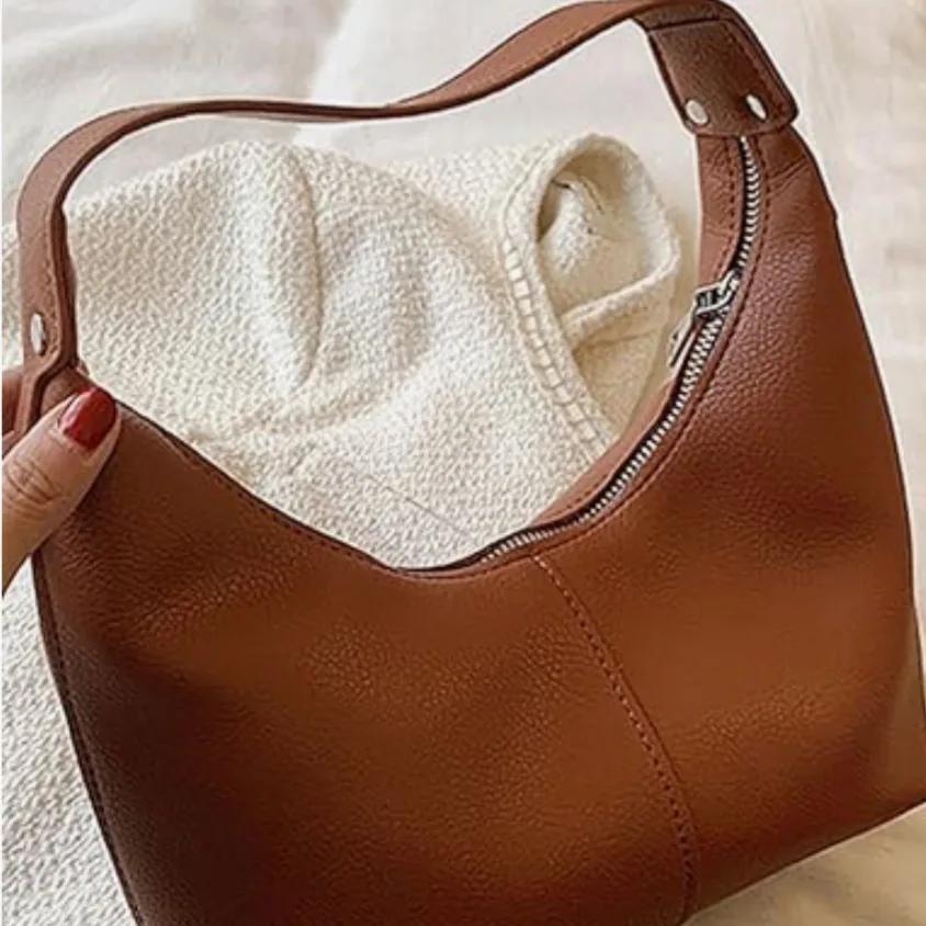Bruine Vegan Leer Tas Juliette – Stijlvolle Schoudertas met Binnenvakje en Rits