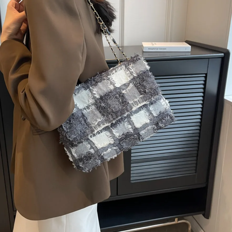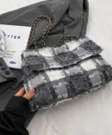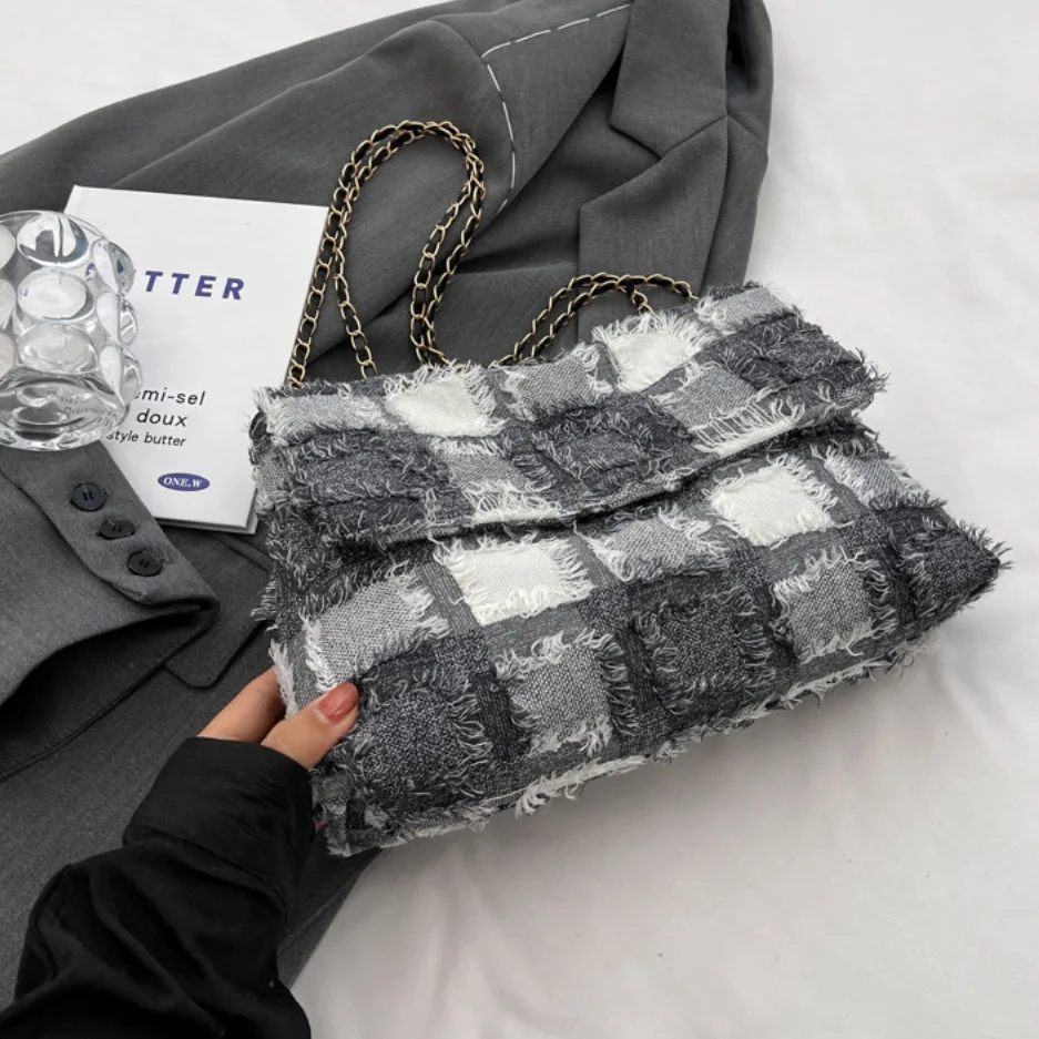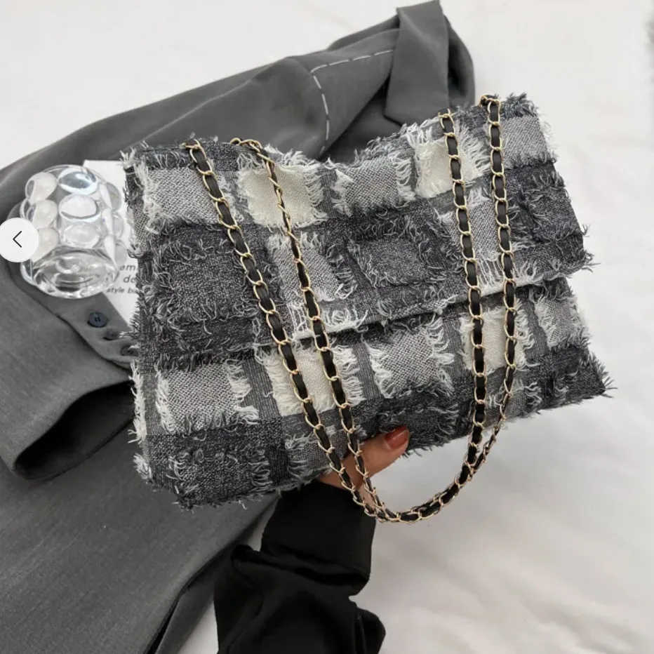 Schoudertas Mayke is een eenvoudige tas met een luxe uitstraling. De damestas heeft een blokprint met rafel details. Deze tas is voorzien van een gevlochten schouderband van goudkleurig metaal en PU-leer. Een perfecte tas voor een avondje uit! Deze beschikt over 1 vak en is afsluitbaar met 2 goudkleurige drukknopen van metaal.