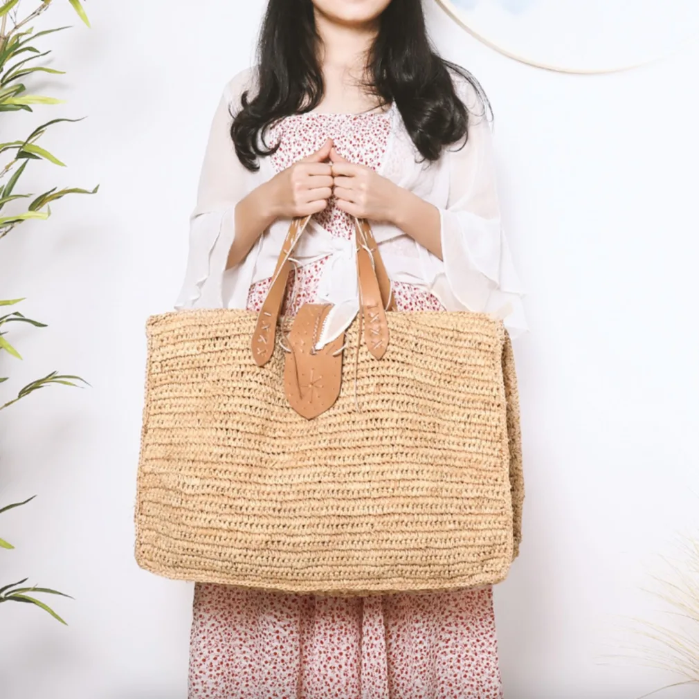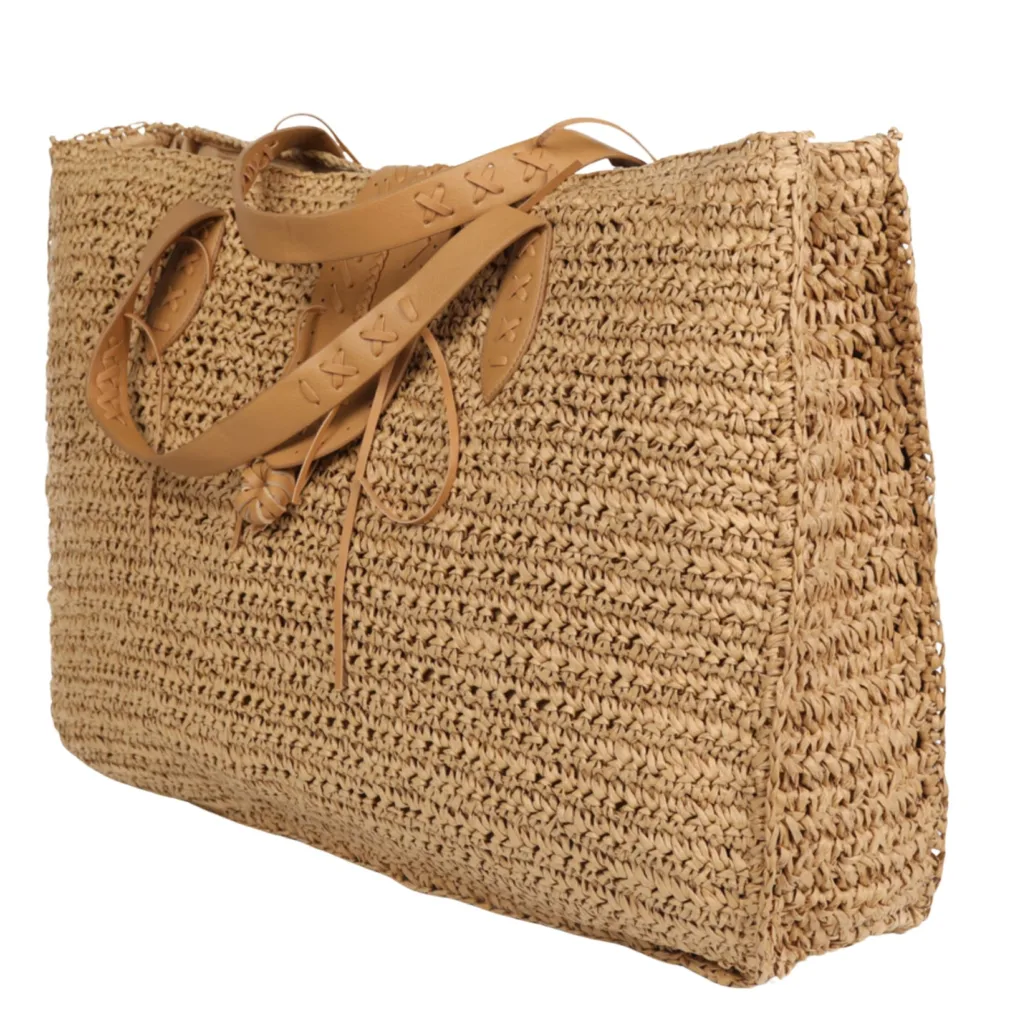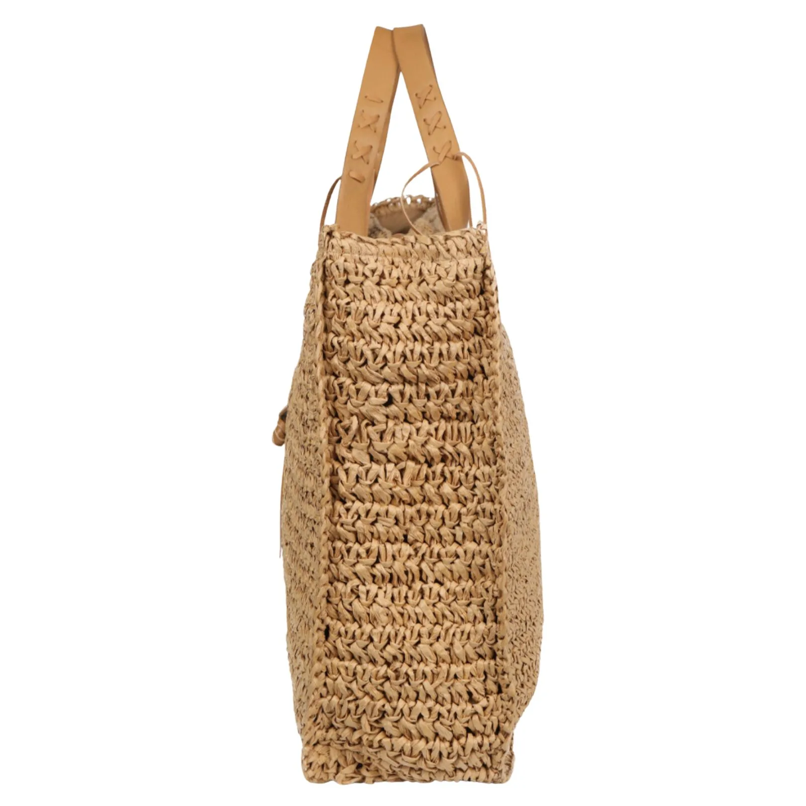 Deze damestas is niet alleen functioneel, maar ook een echte eyecatcher. Het gevlochten stro in combinatie met het lichtbruine vegan leer straalt de ontspannen en bohemian Ibiza style uit die perfect past bij jouw beach look. Of je nu een dagje aan het strand doorbrengt of een zomerse wandeling maakt, met deze tas ben je altijd stijlvol en georganiseerd.